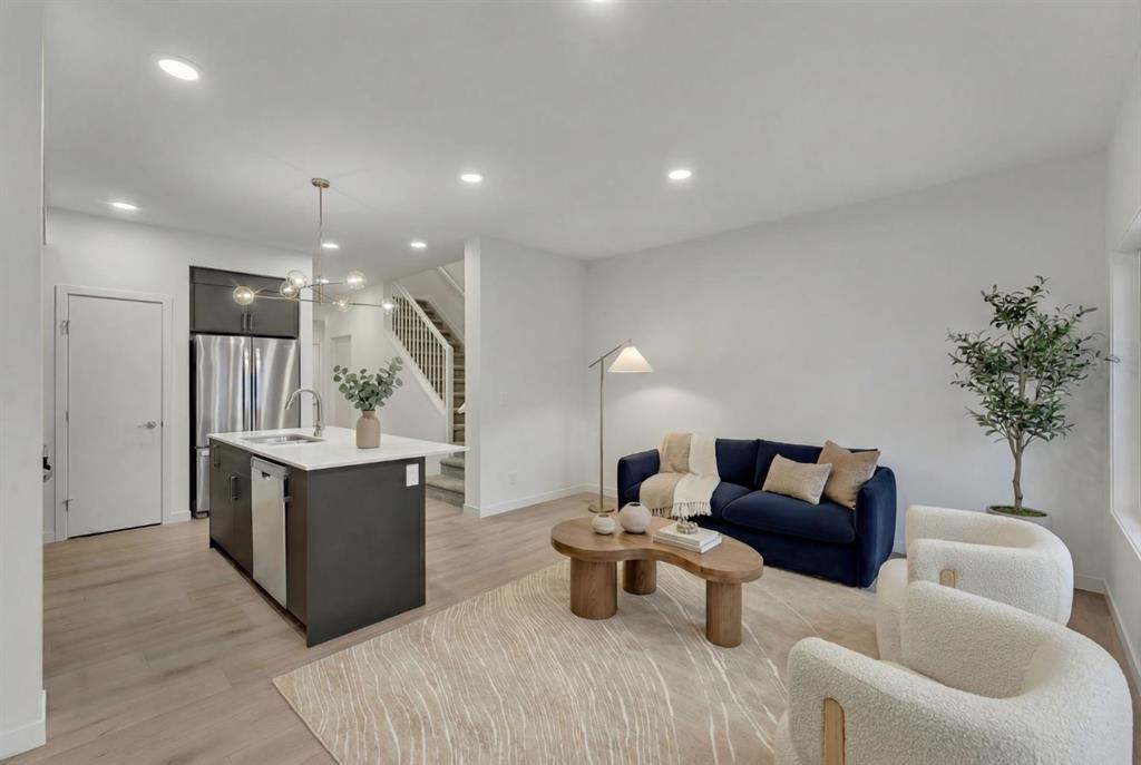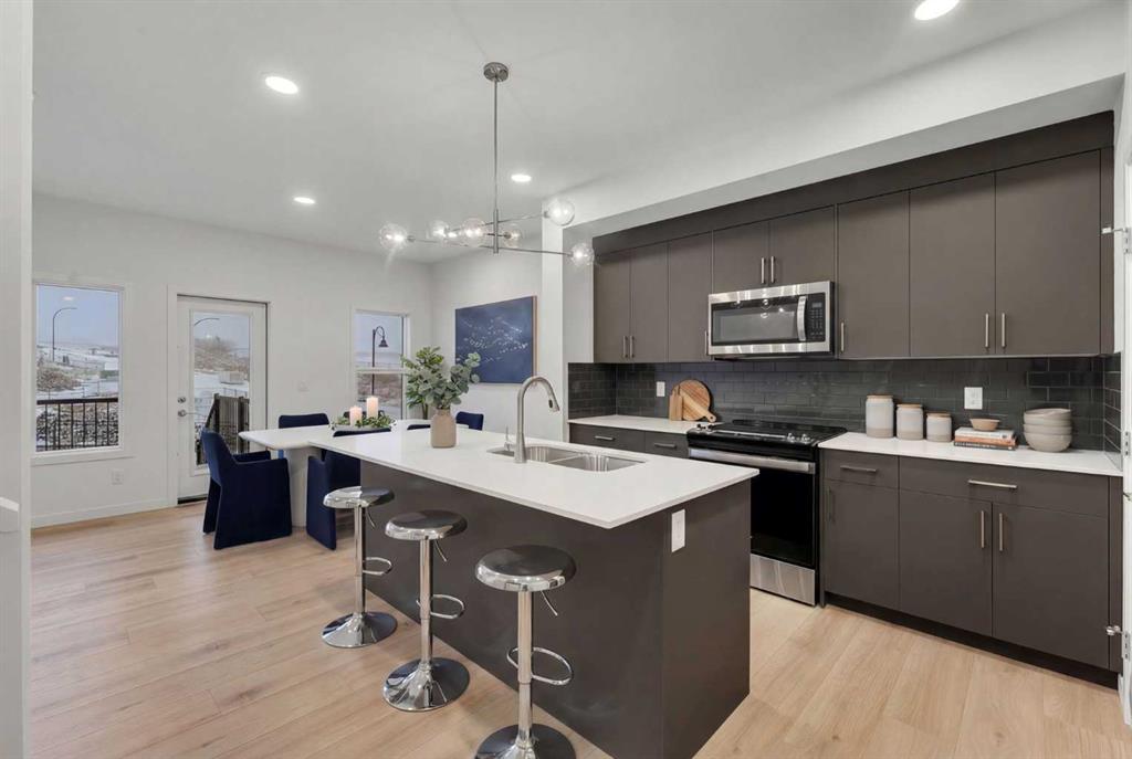Welcome to the Metro Duplex 18 by award-winning Cantiro Homes, available for immediate possession! This beautifully designed home is located in the scenic hilltop community of West Hawk, Cochrane, and is situated on a desirable lot with a walking path behind the home. Step inside to an inviting slate interior colour palette, luxury vinyl plank floors and airy 9′ ceilings. The bright kitchen offers modern cabinetry, quartz countertops, and sleek stainless steel appliances, and is open to the living room and dining room, perfect for entertaining. A convenient mudroom off the oversized attached single garage offers handy built-ins, and the powder room is nicely tucked away, completing the main floor. The upgraded iron spindle railing leads up the upstairs, and the thoughtfully designed layout maximizes every square foot, offering a comfortable primary bedroom with its own ensuite, an oversized shower, and a walk-in closet. Two additional bedrooms and a convenient upstairs laundry complete this level. The basement has its own SEPARATE ENTRANCE, a basement suite rough-in (a secondary suite would be subject to city/municipality approval and permitting), and is a blank canvas ready for your design ideals. This beautiful townhome comes complete with a finished deck and a spacious yard and is designed to suit a range of homeowners, from first-time buyers or investors to those looking to right-size. A well-balanced home in a growing hilltop community — ready when you are. *RMS on measurements provided by the builder. Taxes have not been assessed.