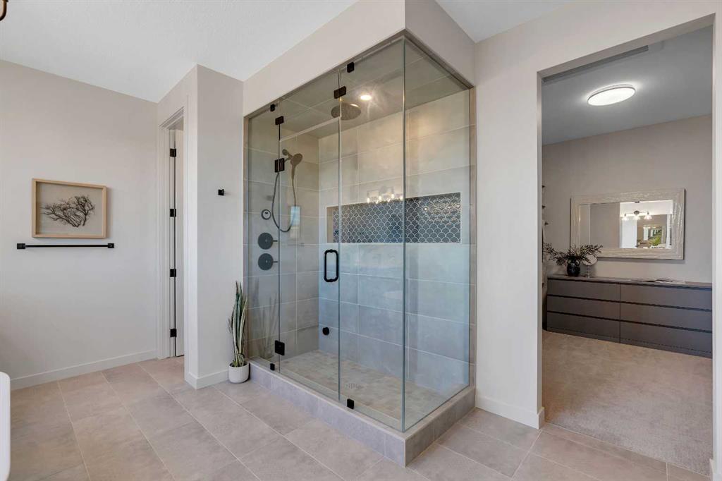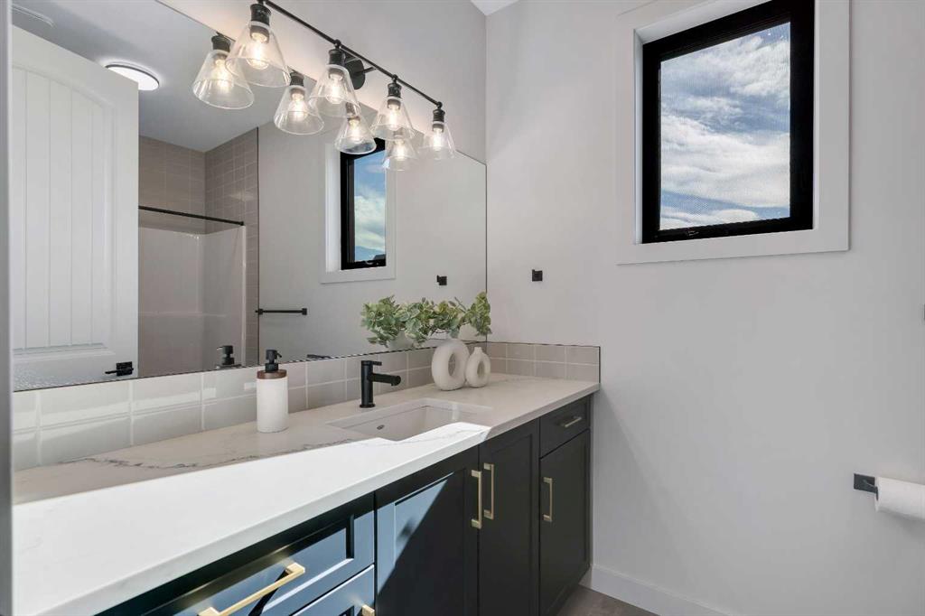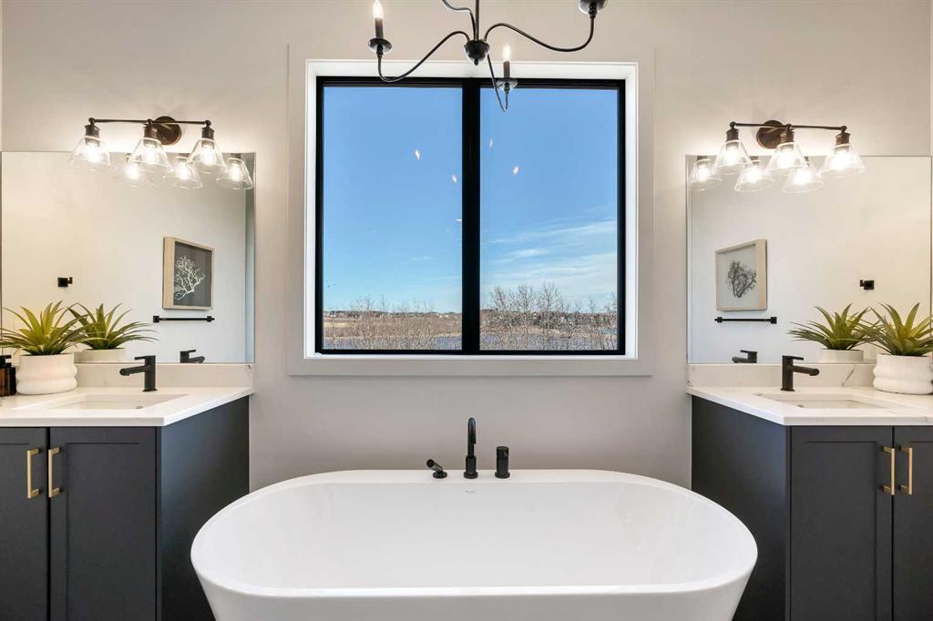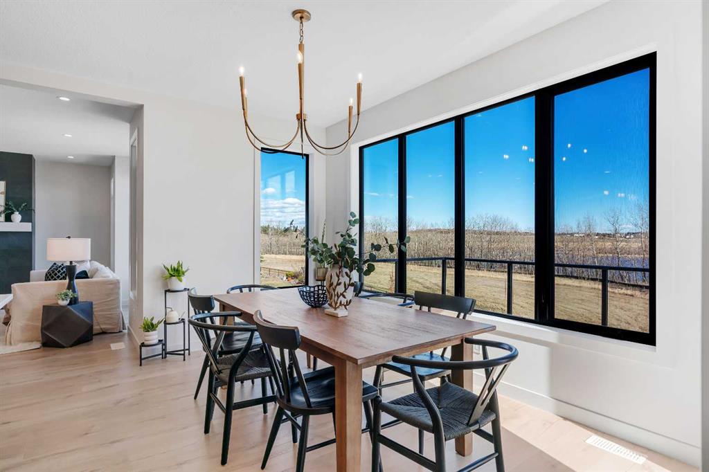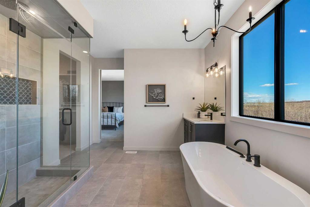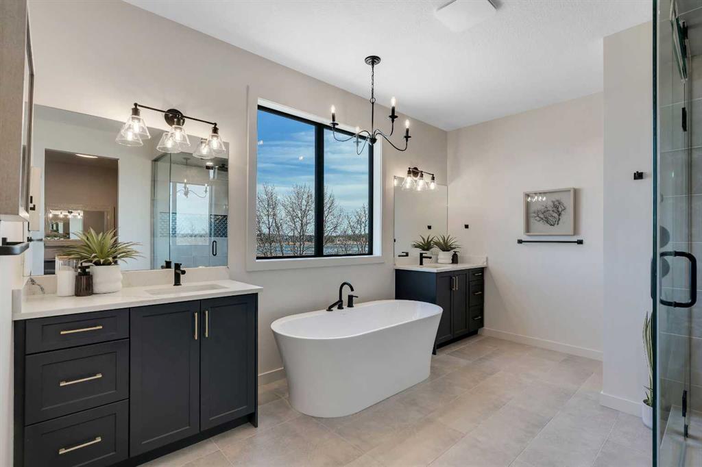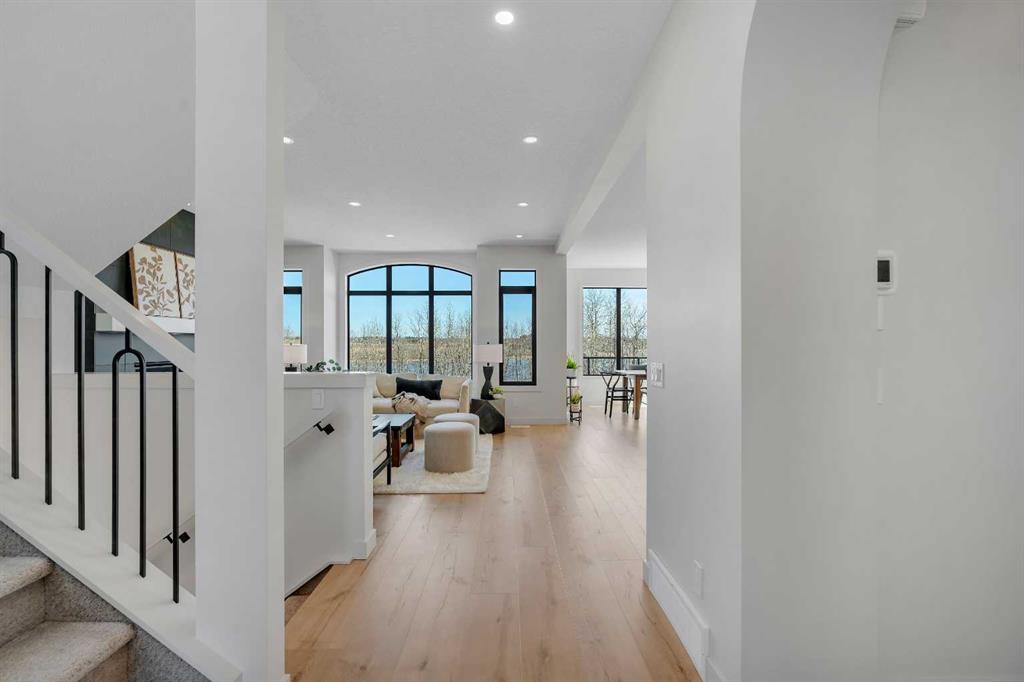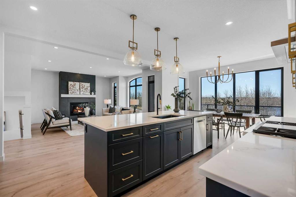Please watch YouTube Video for Full Tour | BACKING ONTO PRIVATE LAKE | HEATED QUAD GARAGE | DEVELOPED WALKOUT | MOUNTAIN VIEWS | 3700 SQFT OF DEVELOPED SPACE | Situated in arguably one of the best locations in Monterra, backing directly onto one of the two private lakes in the community with no walking paths behind the home for an unparalleled level of privacy on a quiet cul de sac. This immaculate Aspen Creek Custom home is the epitome of luxury semi-rural living and offers every feature the discerning buyer is looking for, with a focus on design and function throughout. As you enter the main level you are taken in by the sightlines directly out to the lake and surrounding environmental reserve, with large windows perfectly placed to showcase the incredible views. The designer kitchen features a 36 inch Wolf range, Bosch appliances, a custom tile backsplash, and a large island with quartz counters, all brought together by full height custom white cabinets and contrasting dark lowers, creating an ideal layout for both families and entertaining guests. Just off the kitchen you will find direct access to the walkthrough butler pantry connecting to a spacious mudroom and access to the attached garage. This level also features a sizable dining area surrounded by 3 walls of windows overlooking the lake, along with a large living room centred around a gas fireplace, creating a perfect space for family time. You will also find a main floor office or den with additional views to the east, a 2 pc powder room, and direct access to the large deck with gas line overlooking the lake, an ideal place to enjoy your morning coffee while watching the sunrise or hosting friends throughout the summer. The upper level features a massive primary suite with a large walk in closet with laundry chute and a 5 pc spa inspired ensuite complete with heated floors, a custom tiled steam shower, and a freestanding tub with views of the lake. This level also includes 2 more generously sized bedrooms, a 4 pc bathroom, a large bonus area, and a full size laundry room. The fully developed walkout basement is an ideal family space, complete with a massive bedroom overlooking the lake, a 4 pc bathroom, a large family room, and a perfect area for a home gym with more incredible views and direct access to the backyard. Additional features that cannot be overlooked include the large pie lot with no lake lots left in the community, over 300K in upgrades including more than 100K in landscaping with a fully automated irrigation system controlled from your phone, a high end water softening system, full radon ventilation system completed, and a top level HRV unit. This phase allows for an RV pad on the west side of the home, with ample space already left to complete this in the future, along with electrical service run to the hot tub pad in the backyard. The quad garage is a hobbyist’s dream, complete with a 75,000 BTU Reznor gas heater, hot and cold water lines and 240V power for EV charging.