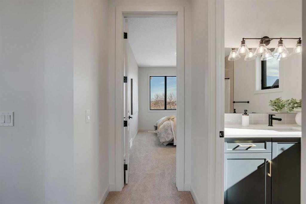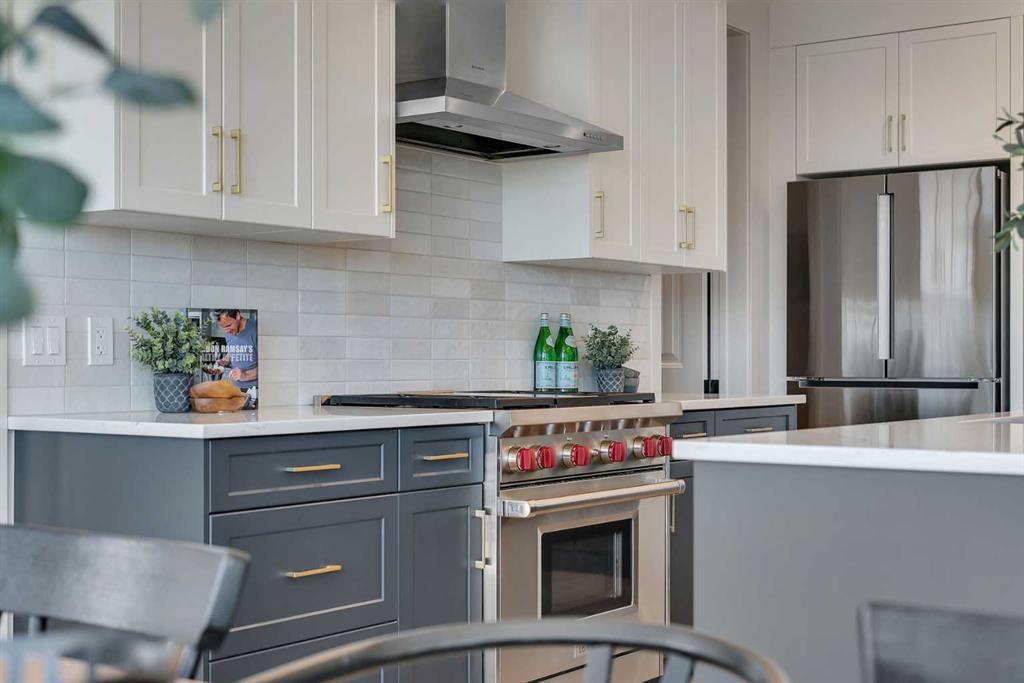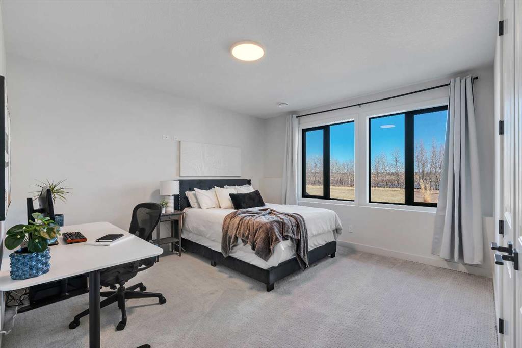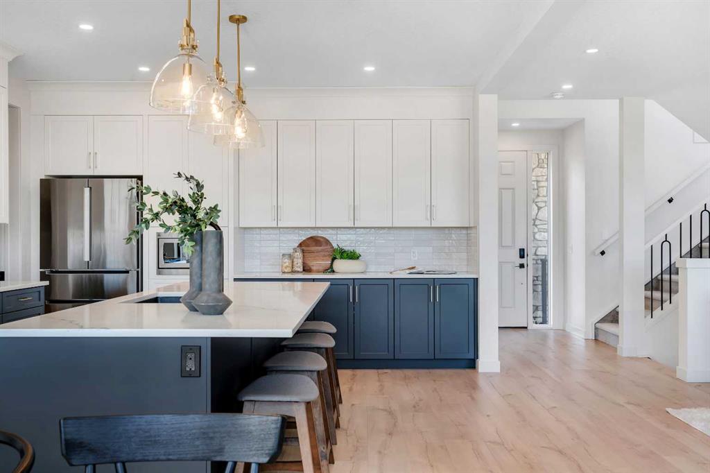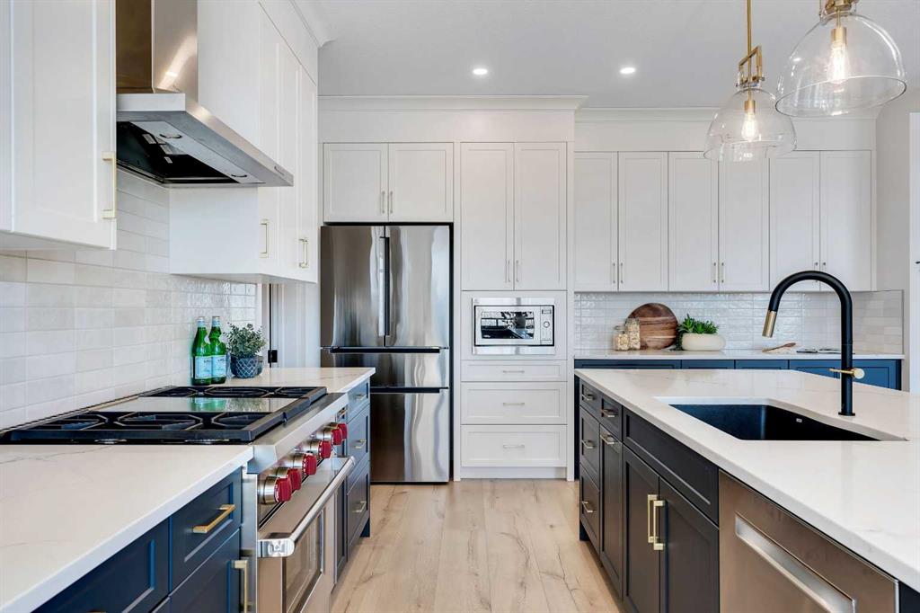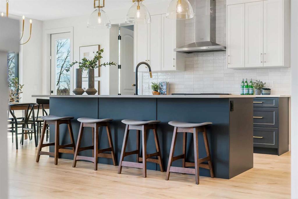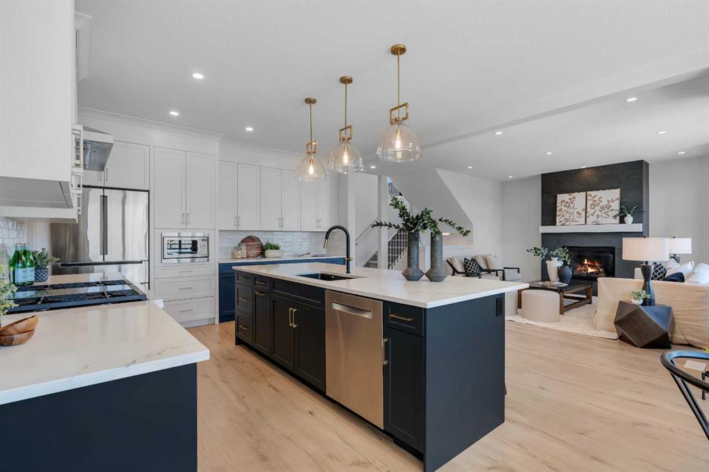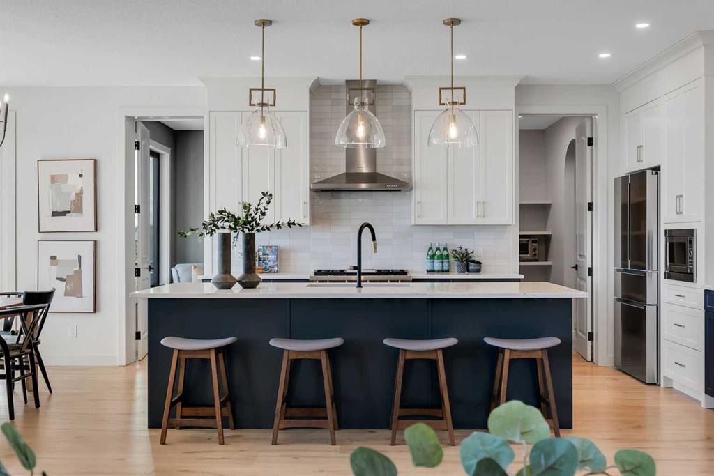 Please watch YouTube Video for Full Tour | BACKING ONTO PRIVATE LAKE | HEATED QUAD GARAGE | DEVELOPED WALKOUT | MOUNTAIN VIEWS | 3700 SQFT OF DEVELOPED SPACE | Situated in arguably one of the best locations in Monterra, backing directly onto one of the two private lakes in the community with no walking paths behind the home for an unparalleled level of privacy on a quiet cul de sac. This immaculate Aspen Creek Custom home is the epitome of luxury semi-rural living and offers every feature the discerning buyer is looking for, with a focus on design and function throughout. As you enter the main level you are taken in by the sightlines directly out to the lake and surrounding environmental reserve, with large windows perfectly placed to showcase the incredible views. The designer kitchen features a 36 inch Wolf range, Bosch appliances, a custom tile backsplash, and a large island with quartz counters, all brought together by full height custom white cabinets and contrasting dark lowers, creating an ideal layout for both families and entertaining guests. Just off the kitchen you will find direct access to the walkthrough butler pantry connecting to a spacious mudroom and access to the attached garage. This level also features a sizable dining area surrounded by 3 walls of windows overlooking the lake, along with a large living room centred around a gas fireplace, creating a perfect space for family time. You will also find a main floor office or den with additional views to the east, a 2 pc powder room, and direct access to the large deck with gas line overlooking the lake, an ideal place to enjoy your morning coffee while watching the sunrise or hosting friends throughout the summer. The upper level features a massive primary suite with a large walk in closet with laundry chute and a 5 pc spa inspired ensuite complete with heated floors, a custom tiled steam shower, and a freestanding tub with views of the lake. This level also includes 2 more generously sized bedrooms, a 4 pc bathroom, a large bonus area, and a full size laundry room. The fully developed walkout basement is an ideal family space, complete with a massive bedroom overlooking the lake, a 4 pc bathroom, a large family room, and a perfect area for a home gym with more incredible views and direct access to the backyard. Additional features that cannot be overlooked include the large pie lot with no lake lots left in the community, over 300K in upgrades including more than 100K in landscaping with a fully automated irrigation system controlled from your phone, a high end water softening system, full radon ventilation system completed, and a top level HRV unit. This phase allows for an RV pad on the west side of the home, with ample space already left to complete this in the future, along with electrical service run to the hot tub pad in the backyard. The quad garage is a hobbyist’s dream, complete with a 75,000 BTU Reznor gas heater, hot and cold water lines and 240V power for EV charging.