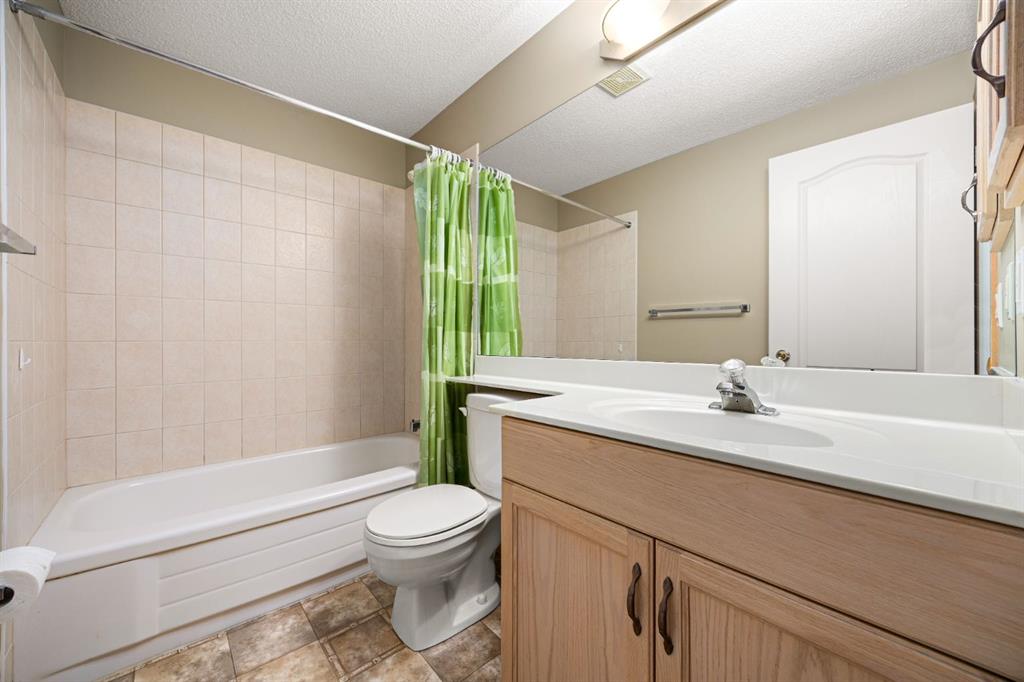 The bright and welcoming lower level extends your living space significantly, featuring tall ceilings and large windows that erase any basement feel. A massive family room provides the ultimate area for relaxation or entertaining, equipped with custom built-ins and a second cozy gas fireplace. This level hosts two additional well-proportioned bedrooms and a full three-piece bathroom, making it ideal for guests or hobbies. From the family room, step directly out to a private, paved covered patio and a treed outdoor area, mirrored by a second private patio on the upper level, ensuring you can enjoy connection with the outdoors regardless of the floor you are on. To top off the exterior appeal, a covered front porch faces west, providing the perfect vantage point to enjoy the evening sun.