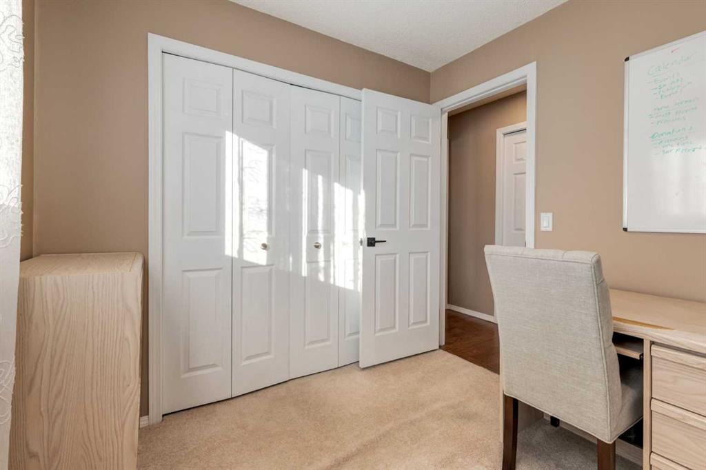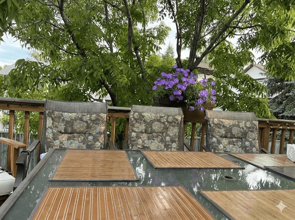 A large portion of this home was renovated in 2023, and it’s a genuinely functional family home in a location that’s hard to beat. You’re minutes to Fish Creek Park, Safeway, Costco, and there’s a daycare just down the street. Add rare RV parking, an EV charger, and an oversized garage, and you’ve got everyday practicality covered. The real highlight is the backyard. With two oversized outdoor spaces, a large upper deck and a separate patio, you get multiple zones for entertaining, kids playing, or quiet evenings outside. There’s also tons of green space, mature trees, and a fully fenced, south facing yard that stays bright and usable all day. Inside, vaulted living room ceilings and big windows bring in great natural light, with a stone surround fireplace anchoring the space. The kitchen features quartz countertops, stainless steel appliances, ample cabinetry, and an eating nook that opens to the deck for easy indoor outdoor flow. Upstairs you’ll find three bedrooms, all a great size for kids and guests. The basement is developed and adds even more flexibility with a fourth bedroom and a large entertainment room, complete with a 110 inch screen and 4K projector (available by separate agreement). The basement also has a roughed in bathroom, offering an opportunity to add a finished bath.