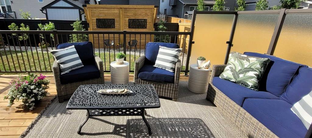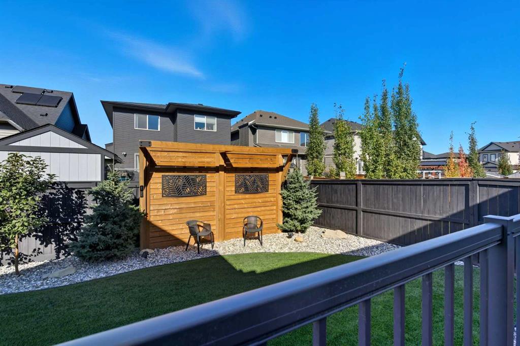 Designed for both everyday living and entertaining, the bright main floor welcomes you with soaring 10-foot ceilings and elegant luxury vinyl plank flooring throughout. The chef-inspired kitchen serves as the heart of the home, featuring premium KitchenAid appliances, quartz countertops, and a spacious butler’s pantry complete with a second BLANCO sink, bar fridge, microwave, and additional cabinetry—perfect for keeping the main kitchen clutter-free while hosting family and friends. Black-trim windows and modern lighting add understated sophistication. The fully developed lower level is open and inviting with rare 9-foot ceilings and privacy windows that bring in an abundance of natural light. This level offers two generous bedrooms with oversized closets, a full bathroom, and a spacious recreation room. An oversized storage area, central vacuum system, and dual furnaces provide added everyday comfort and convenience. The professionally landscaped and fenced yard is purposely designed for low-maintenance living, allowing you to spend more time enjoying the space rather than maintaining it. The large private deck with privacy panels creates an inviting outdoor retreat for summer gatherings. An oversized double garage provides exceptional storage, along with the convenience of a rough-in for an EV charger. (FORD F-150 fits) Surrounded by parks, walking paths, schools, restaurants, and shopping, this move-in ready bungalow offers a rare opportunity to enjoy upscale living in the highly desirable Coopers Crossing community. New Home Warranty – Structural until April 2033 & Building Envelope April 2028.