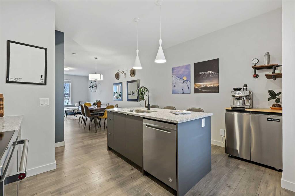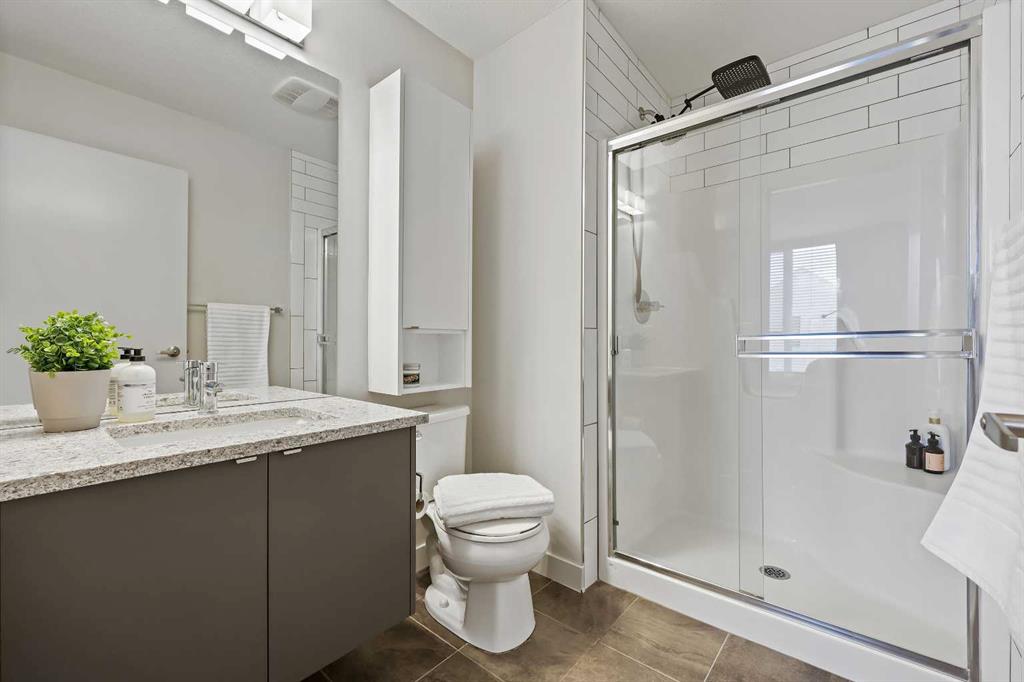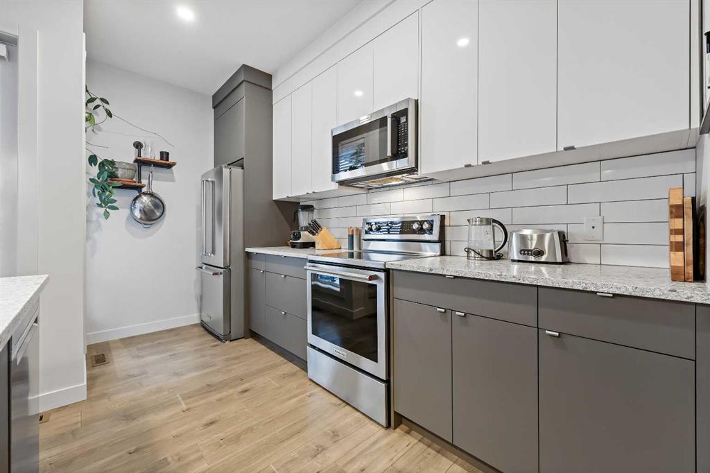 Thoughtfully designed and beautifully finished, this stylish Bowness townhome offers modern living with a functional layout and two spacious upper level primary suites. Enter through the attached garage to a welcoming main level that features a spacious foyer with ample closet space, a convenient powder room, and a versatile flex area—ideal for a home office, workout space or optional third bedroom. The main living area is on the second floor and highlights wide-plank flooring, oversized windows, and an open-concept design. A sleek and practical kitchen features quartz countertops, stainless steel appliances, and an oversized island with seating. Just off the kitchen, a west-facing covered balcony with a gas line offers the perfect spot to barbecue and unwind at the end of the day. The dining and living areas connect seamlessly creating a comfortable space for both everyday living and entertaining. Continue up to the third level and discover two large primary bedrooms, each with ample closet space and ensuites. A conveniently located laundry area and additional storage complete this level. There is central A/C for year-round comfort. Located in the heart of Bowness, you’re just minutes from the Bow River pathways, local cafés, and everyday community amenities. The Calgary Farmers’ Market West and Trinity Hills shopping area are a short drive away, and quick access to Stoney Trail, Sarcee Trail, and 16th Avenue makes getting downtown or across the city easy. A fantastic opportunity to enjoy modern living in the heart of Bowness!