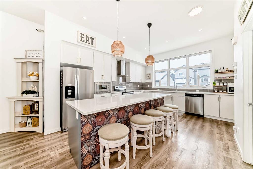 Welcome to 355 Masters Row SE, a beautifully designed home in the sought-after lake community of Mahogany. This stylish and functional property offers an open-concept layout with modern finishes, as you step inside to a spacious foyer you are greeted with by a bright 9 foot ceiling living, dining flooded with natural lights coming from two large windows a spacious kitchen featuring stainless steel appliances, quarts counter tops and a large island great for family gatherings, a full height crisp white cabinetry and a good size pantry. A stylish powder room and a functional mudroom finishes the main floor. Upstairs you’ll find generously sized primary bedroom with good size walk in closet and a full bath with double vanity. Two generous bedrooms and a shared full bath are conveniently next to each other. The basement offers a unique feature as you come down the stairs you will find a mini living room dining and sink with counter tops. It also comes with its own refrigerator and washer dryer. It also offers a great size fourth bedroom and a full bathroom. Enjoy outdoor living with a fully fenced and low maintenance back yard. There are also two gravel parking spaces outside the backyard. Easy access to parks, pathways, schools, shopping, and exclusive lake amenities. Plus, a convenient bus stop is just steps away. making daily commuting a breeze. A perfect blend of comfort, convenience, and community living.
