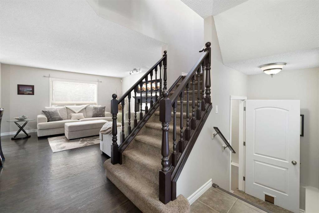 This inviting home features central air conditioning, a fully finished basement, and a heated double attached garage—perfect for Calgary’s changing seasons. The bright and functional main floor boasts an open-concept layout with hardwood and tile flooring throughout. The spacious kitchen and dining area are ideal for both everyday living and entertaining, complete with a kitchen island/breakfast bar and a newer stove. An added bonus is the additional washer/dryer hookups conveniently located in the main floor bathroom.