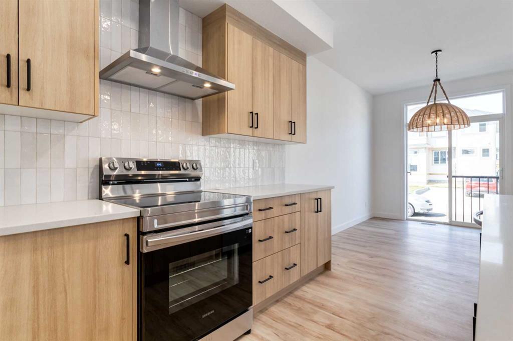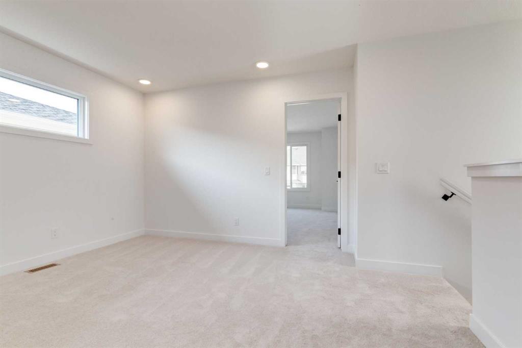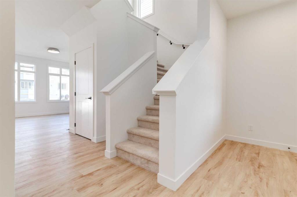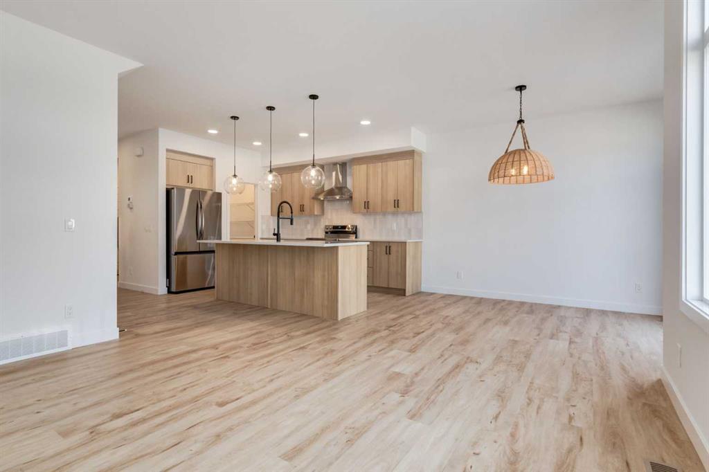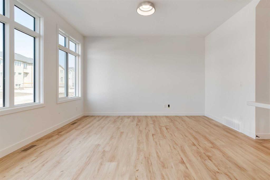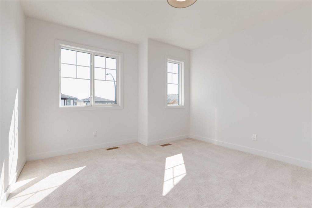 Welcome to the Easton by Rohit Homes, a front-attached garage home offering 1657 square feet, three bedrooms upstairs, a central bonus room, and a separate upper laundry room. This thoughtfully designed home features a 9 foot ceiling on the main level, an oversized 8 foot kitchen island, walk-in pantry, side entrance, and a full appliance package including washer and dryer. Designed for both function and comfort, the Easton delivers a layout that supports everyday living while offering flexibility for growing households. The main floor is anchored by a spacious, open-concept kitchen designed around an efficient work triangle for seamless cooking and entertaining. The oversized island comfortably seats four and serves as the heart of the home, while the walk-in pantry adds exceptional storage. Large rear-facing windows flood the living and dining areas with natural light, creating an open, bright, and welcoming atmosphere. A wide foyer provides practical space for coats, footwear, and everyday organization, while the double attached garage offers room for two vehicles plus additional storage. Finished in the Ethereal Zen interior palette, the interior features custom lighting, curated mirrors, and designer-selected details that create a calm, modern aesthetic with layered warmth and texture. Upstairs, the centrally located bonus room provides flexible living space ideal for a media room, home office, or play area. All three bedrooms are located on the upper level, including a generous primary retreat with a sizeable walk-in closet and a full ensuite featuring a soaker tub and shower. The additional bedrooms are well-sized to accommodate queen beds and workspaces. The separate upper laundry room adds everyday convenience and practicality. Located in the southeast Calgary community of Heartwood, residents enjoy quick access to major roadways, nearby shopping, dining, schools, parks, and everyday amenities. With close proximity to Seton, the YMCA, the South Health Campus, and recreation facilities, Heartwood offers the convenience of established services with the feel of a growing neighborhood. This home is backed by full Alberta New Home Warranty coverage for added peace of mind.