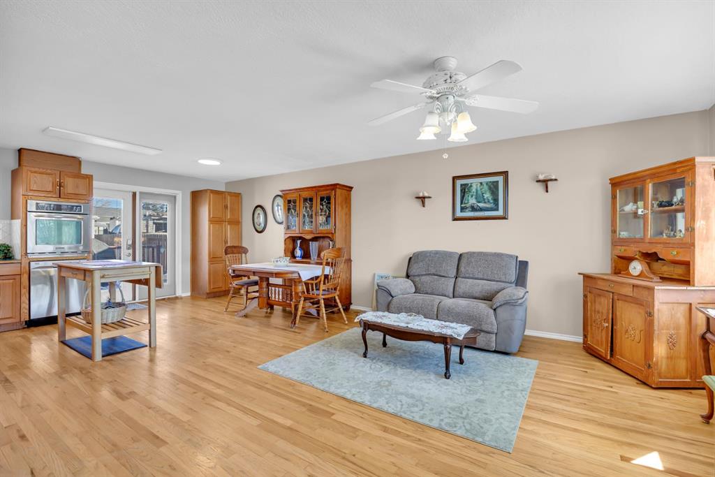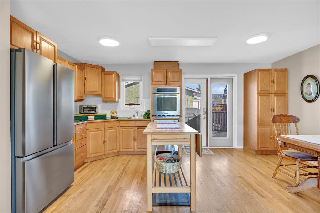 Welcome to 36 Aspen Crescent. Nestled in a quiet, non through road , in the mature community of Airdrie Meadows. This bright spacious 3 level split has so much to offer its new family. The main floor greets you with an open floor plan flooded with natural sunlight. Hardwood floors usher you into the front sitting room. Large dining room area with a built in pantry & French doors leading to your outside oasis. The kitchen is open to the dining & sitting rooms making interaction with family & guests during meal preparation optimal. Newer stainless steal appliances including the built in wall oven, dishwasher (2025), refrigerator (2025) & countertop range (2020). Upstairs you will be introduced to the spacious primary bedroom with closet built ins. The second & third bedroom. And, the 4 pc main bath with updated vanity & light fixtures. The lower level rec room boasts 2 large windows which keeps the natural light flowing throughout this warm welcoming space. This is where families gather & memories are made. This large open area is ideal for family movie/games nights & has plenty of space to accommodate an office or study area. The extended laundry & utility area offers plenty of additional storage while the massive crawl space will ensure that your garage is never cluttered with unnecessary items. This area is also home to a cold storage room. Ideal for canning or wine. There is plenty of space in the utility room to install a second bathroom & a portion of the rec room could be converted to a bedroom if desired. Ask your mortgage broker about the purchase plus improvements program. Outside the rear French Doors you will enter your garden oasis. The massive 3 tiered deck is ideal for entertaining or kicking back & enjoying those warm summer nights. Step into your very own Secret Garden…where the magic of imagination awaits you. Creatively thought out flower beds & design. A secluded lower patio with a beautiful arched entry. Extensive storage under the deck. Storage shed. Side storage shed. And, an oversized garage measuring almost 22 x 24 ft. Fully insulated with 220 wiring. This large lot could also accommodate an RV pad with some alterations. Additional upgrades include a stunning wrought iron side fence. Windows & doors replaced app 20 yrs ago. Furnace replaced app 2010. Hot water tank replaced app 2015. Roof replaced app 2014. Vacu Flo & Water softener. This home is conveniently located within walking distance to 4 different schools. Churches. The Kinsmen Park & Arena. The Urgent Centre & downtown Airdrie. Quick access to highway 2 for those who commute. This is a great starter home for a single person, couple, or small family. Under $500,000 with no condo fees. Contact your favourite agent today to call this home your own.