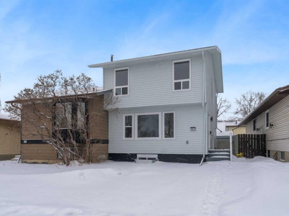 FULLY RENOVATED | NEW ROOF & EXTERIOR | FINISHED BASEMENT | HEATED DOUBLE GARAGE | PARK TO THE LEFT – NO NEIGHBOURS | QUIET CUL-DE-SAC | 3 BED | 1.5 BATH | 1,800 SQFT DEVELOPED AREA | Welcome to this beautifully renovated home located on a quiet cul-de-sac in the community of Falconridge, offering just under 1,800 square feet of developed living space along with exceptional privacy, functionality, and modern design. This home has been extensively renovated, featuring new exterior siding and fascia, a modern kitchen, updated flooring and baseboards, fresh paint throughout, modern lighting fixtures, and a brand-new roof, gutters, and downspouts. With no neighbours to the left, a park steps away, alley access at the rear, and easy access to public transit, this property provides a rare sense of space and everyday convenience. Upon entry, you are welcomed by a foyer with a convenient closet, opening to a massive living area on the left featuring an oversized window that floods the space with natural light and a large screen door leading to an expansive backyard and deck, perfect for entertaining or relaxing outdoors. To the right, the modern kitchen showcases stainless steel appliances, quartz countertops, and sleek contemporary finishes, complemented by a dedicated dining area with built-in cabinetry offering ample storage and an additional separate entry for added functionality. The main floor is finished with a blend of luxury vinyl plank and hardwood flooring, creating a refined balance of modern style and timeless character, and is completed by a stylish 2-piece bathroom. Upstairs, the spacious primary bedroom features both front and rear windows, while two additional bedrooms and a modern 4-piece bathroom with a window allow for natural light and added ventilation. The fully developed basement offers a versatile open concept recreational space that can easily be converted into an additional bedroom, home office, gym, or entertainment area, along with a dedicated laundry room. Outside, enjoy a detached heated double garage with alley access, featuring two windows for added natural light, and outstanding parking options including ample cul-de-sac parking, two garage spaces, and an additional parking area beside the garage ideal for an RV or extra vehicle. An excellent opportunity for investors, with potential rental income of up to $2,500 per month. Families will appreciate the nearby schools such as Falconridge School (K–6), Grant MacEwan School (K–6), St. John XXIII School (K–9), Terry Fox School (Junior High), and Bishop McNally High School, along with close proximity to parks, shopping, major roadways, and convenient transit routes. This move-in-ready home offers privacy, flexibility, and exceptional value in a well-connected, family-friendly community. Book a showing with your favourite realtor today!