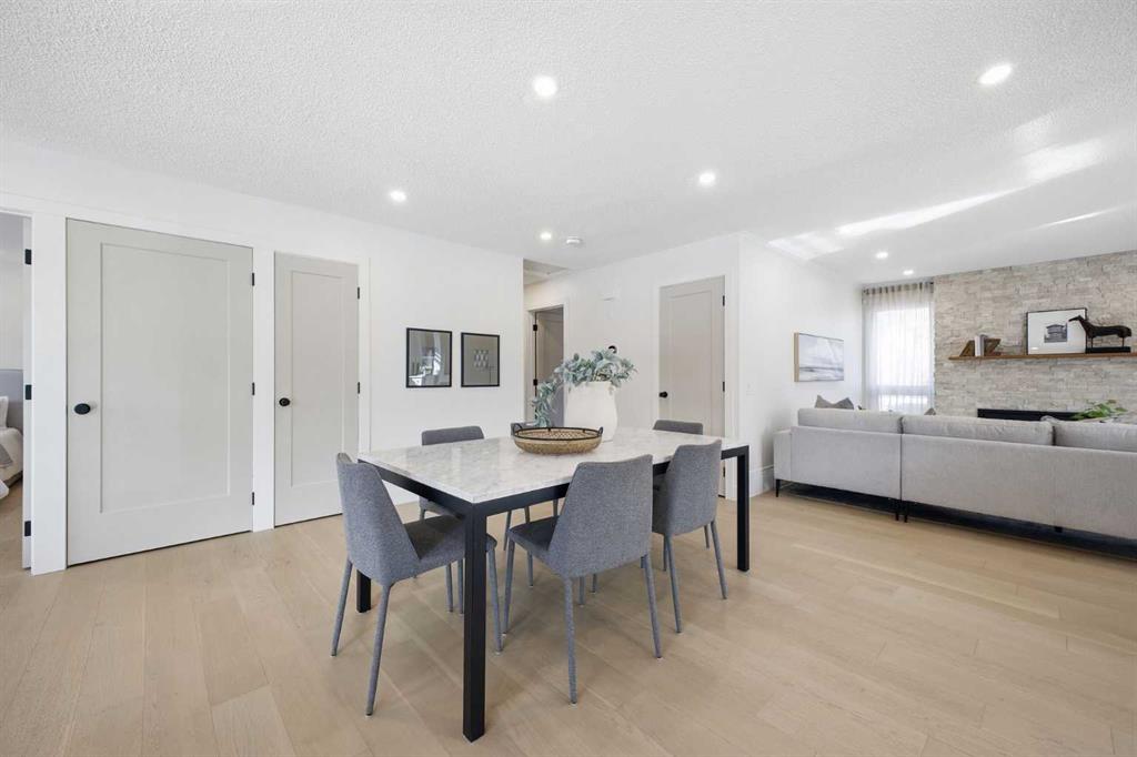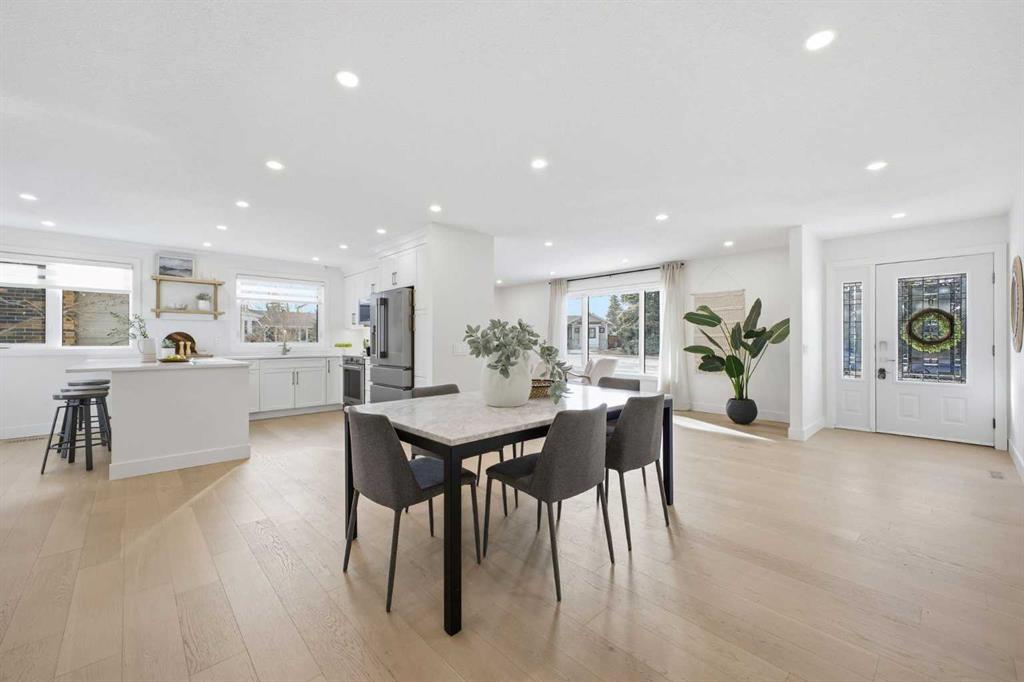 The whole main floor feels connected while still keeping the function intact, finished with engineered hardwood floors, fresh paint, recessed lighting, updated interior doors, new carpet, and new baseboards throughout.