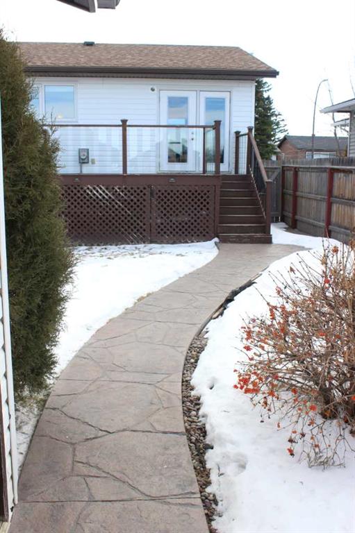 This is a fabulous home, meticulously upgraded over the years with careful consideration to energy efficiency. The main floor boasts gorgeous hardwood flooring throughout the main floor drenched in sunlight through by the big bright TRIPLE PANE windows in the spacious living room and 2 main floor bedrooms. The kitchen provided generous cupboard and countertop space in top notch condition and stylish/durable ceramic floor tiling. The bathroom is stylishly developed and highlighted by solar tube lighting and includes luxurious heated flooring. The large windows in the lower level of the bi-level make the living spaces feel bright and airy with extensive living spaces in both bedrooms and the comfortable family room/ theater space. Laundry/utility room provides lots of room and includes plenty of extra storage. The real highlight of the home is the solar power array in which the current owner enjoys “free electricity” averaged out over the course of the year. (ask for details) The home is extra energy efficient with the implementation of the triple pane windows, extra spray foam insulation in portions of the basement, and new exterior house wrap and siding. The home sits on a gorgeous lot complete with high end stamped concrete, roomy deck, huge double car garage and smart storage shed with its own solar lighting. The location is unparalleled for the growing family on a quite cul-de-sac attached to a large well-equipped park/playground just steps away and a short stroll to school. Incredible value , absolutely move in condition with tons of living space in a terrific location and bonus electric supply; no disappointments!