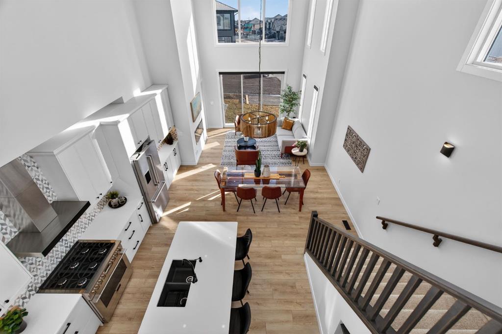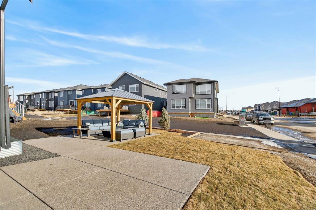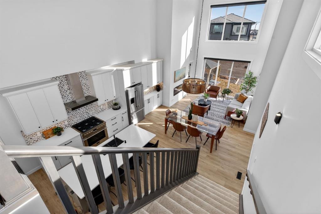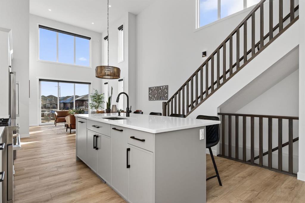 Welcome to luxury in this beautifully designed Trico Westwood model home, offering the highly sought after convenience of a main floor primary suite, presenting the functionality of a bungalow with the added bonus of upper level living. As you step inside, immediately you notice the bright and welcoming main floor, featuring an open, thoughtfully designed layout. With 4 additional windows added to the south wall, there’s a ton of natural light, and all are equipped with electric & solar powered blinds on its own wifi system. Then there is the kitchen, a true show piece, complete with ample cabinetry, upgraded Bosch appliances, an Italian gas stove by Fulgor and a pantry for extra storage. Convenient main floor laundry, a 2 piece powder room, and easy access to the double attached garage enhance the home’s practical design. The standout feature is the main floor primary bedroom retreat, offering privacy and comfort with a walk in closet and a luxurious 5 piece ensuite. Upstairs, you’ll find two generously sized bedrooms, a full bathroom, and a versatile family room. And the bonus: a balcony to show off the stunning Rocky Mountain views with a fun vantage point overlooking the D’Arcy Golf Course 2nd tee box. The fully developed basement expands your living space even further, featuring a massive rec room with multiple functions, two additional bedrooms, a full bathroom, and plenty of storage. And with 9 foot ceilings and larger windows, this basement feels like anything but a basement. Outside, there have been many added upgrades to the home exterior as well as a widened front driveway, additional rear gravel parking pad, a concrete outdoor area with gazebo and gas hook ups not only for your BBQ by the home, but also for a fire table under the gazebo. Situated in the quiet, family friendly neighbourhood of D’Arcy, close to parks, pathways, the golf course and amenities, this home offers the perfect blend of comfort, functionality, and community living. A rare opportunity to own a move-in ready, highly upgraded home in one of Okotoks’ most desirable neighbourhoods. Contact your favourite realtor to book a showing today!