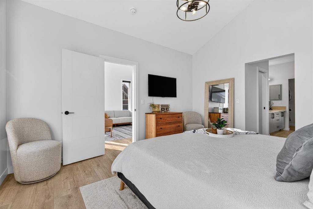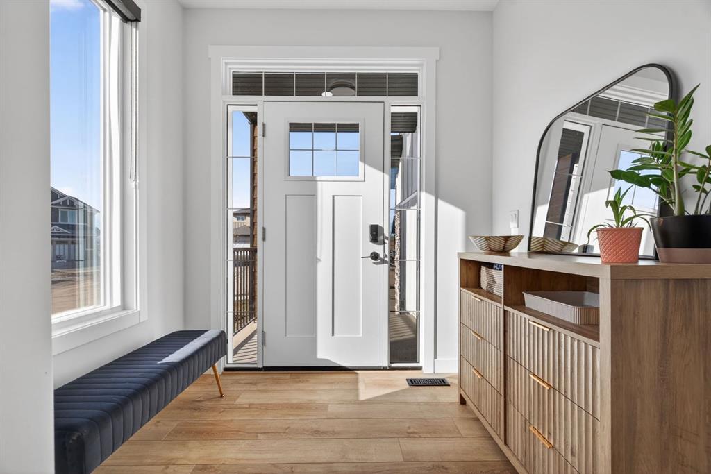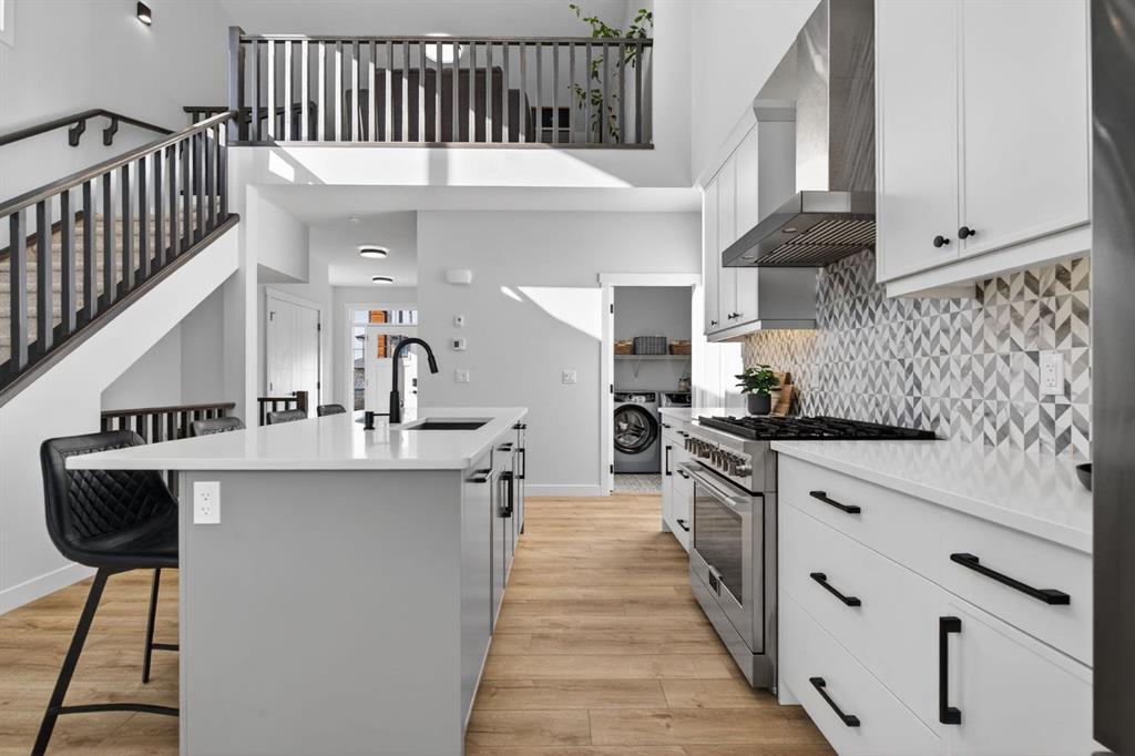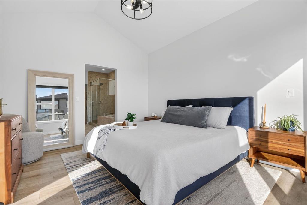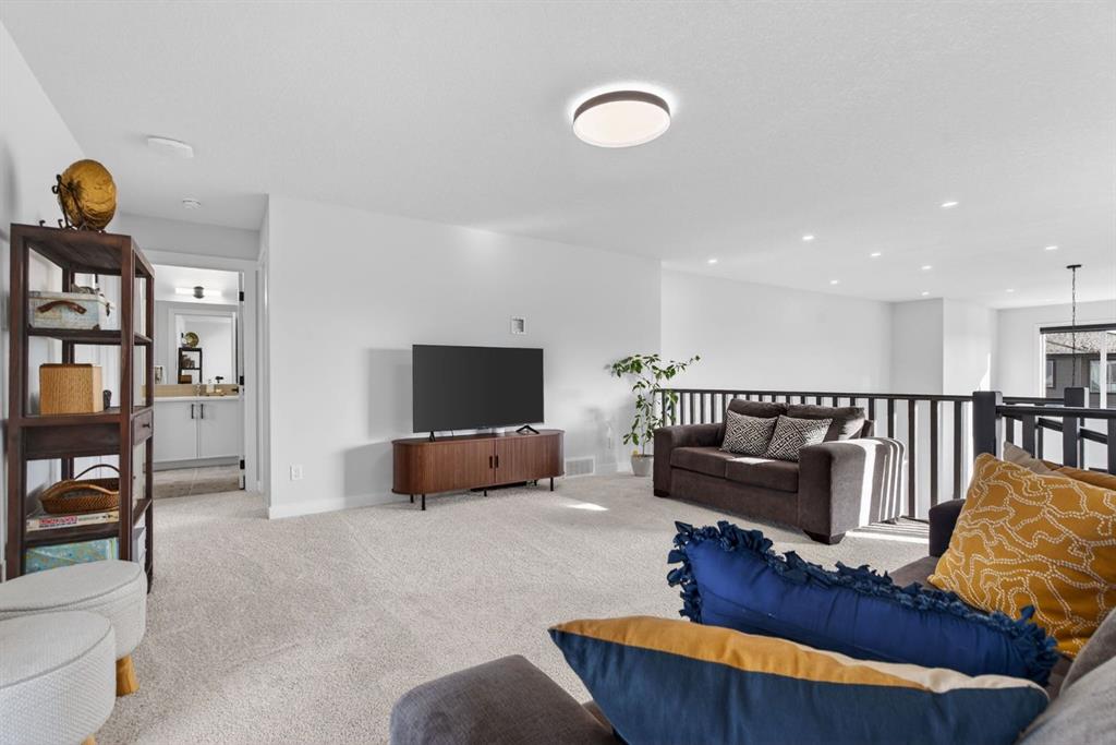 Welcome to luxury in this beautifully designed Trico Westwood model home, offering the highly sought after convenience of a main floor primary suite, presenting the functionality of a bungalow with the added bonus of upper level living. As you step inside, immediately you notice the bright and welcoming main floor, featuring an open, thoughtfully designed layout. With 4 additional windows added to the south wall, there’s a ton of natural light, and all are equipped with electric & solar powered blinds on its own wifi system. Then there is the kitchen, a true show piece, complete with ample cabinetry, upgraded Bosch appliances, an Italian gas stove by Fulgor and a pantry for extra storage. Convenient main floor laundry, a 2 piece powder room, and easy access to the double attached garage enhance the home’s practical design. The standout feature is the main floor primary bedroom retreat, offering privacy and comfort with a walk in closet and a luxurious 5 piece ensuite. Upstairs, you’ll find two generously sized bedrooms, a full bathroom, and a versatile family room. And the bonus: a balcony to show off the stunning Rocky Mountain views with a fun vantage point overlooking the D’Arcy Golf Course 2nd tee box. The fully developed basement expands your living space even further, featuring a massive rec room with multiple functions, two additional bedrooms, a full bathroom, and plenty of storage. And with 9 foot ceilings and larger windows, this basement feels like anything but a basement. Outside, there have been many added upgrades to the home exterior as well as a widened front driveway, additional rear gravel parking pad, a concrete outdoor area with gazebo and gas hook ups not only for your BBQ by the home, but also for a fire table under the gazebo. Situated in the quiet, family friendly neighbourhood of D’Arcy, close to parks, pathways, the golf course and amenities, this home offers the perfect blend of comfort, functionality, and community living. A rare opportunity to own a move-in ready, highly upgraded home in one of Okotoks’ most desirable neighbourhoods. Contact your favourite realtor to book a showing today!