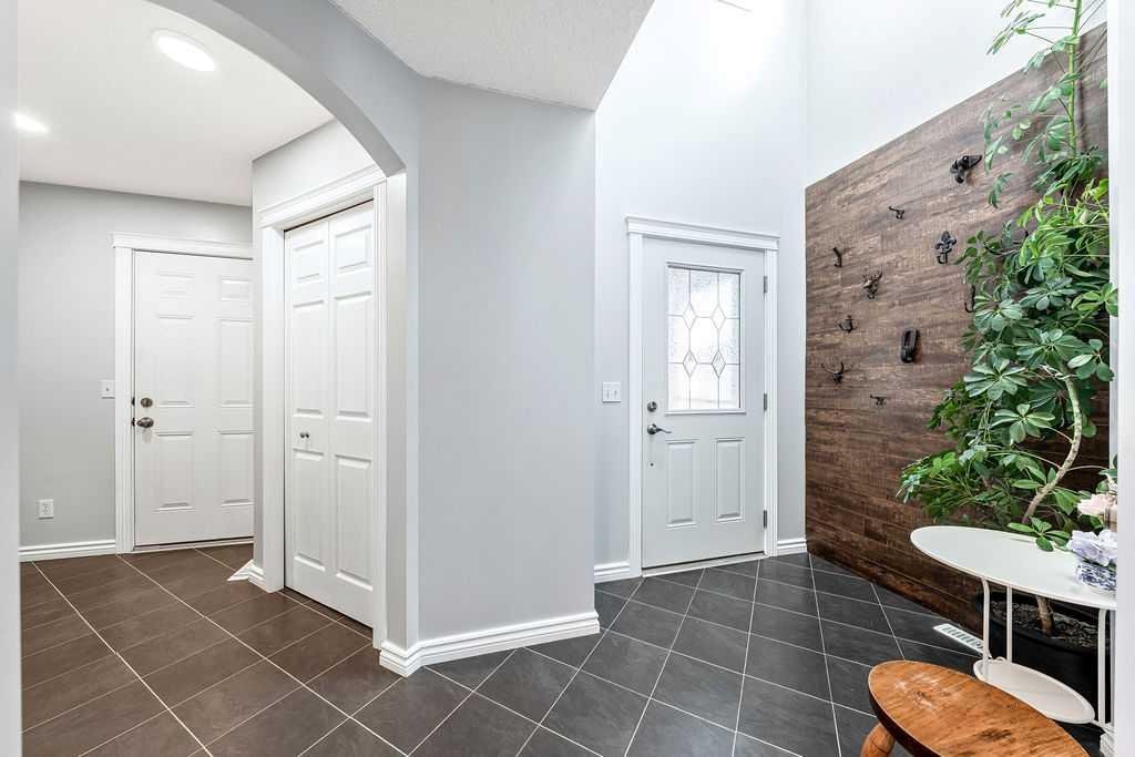 Upon entry, you’re welcomed by a thoughtfully designed mudroom featuring decorative wall hooks that add both style and everyday practicality, perfectly complemented by a conveniently located 2-piece powder room and main-floor laundry—an ideal setup for busy households.