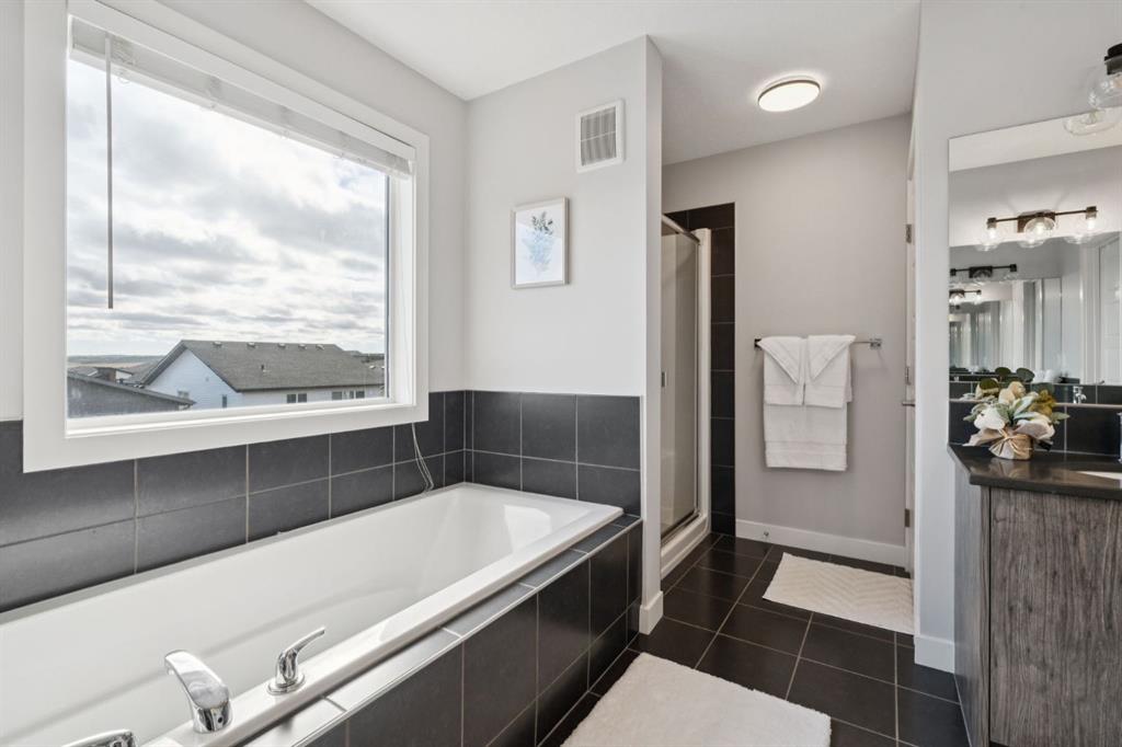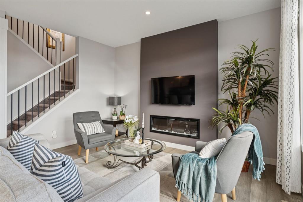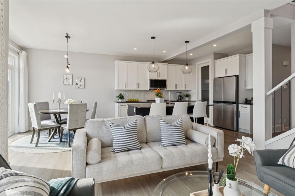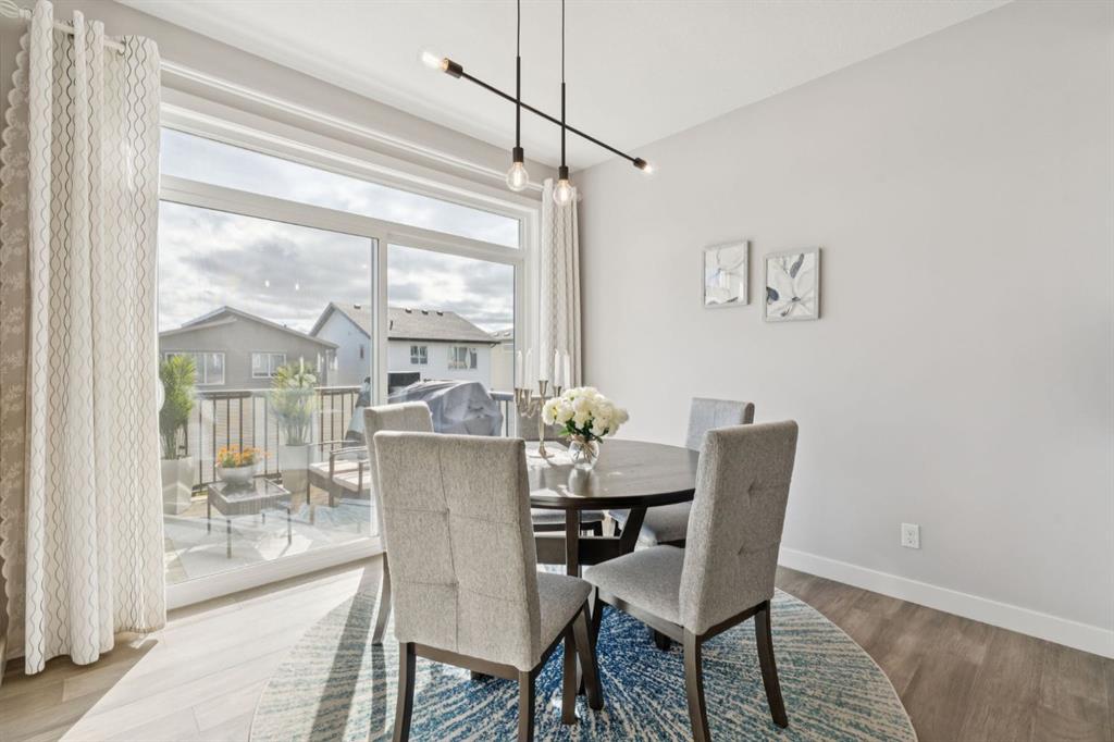 Experience refined living in this beautifully designed 2023 built home, where timeless style meets everyday comfort. The heart of the home is a BRIGHT, luxurious WHITE kitchen featuring QUARTZ countertops and STAINLESS STEEL appliances, DESIGNER TILE, and elegant finishes throughout—perfectly suited for both entertaining and everyday living. Upstairs includes a stunning primary retreat with VIEWS of Cochrane’s Glenbow Valley. Indulge in the spa-inspired 5-piece ENSUITE, complete with a SOAKER TUB, STAND ALONE SHOWER, DOUBLE VANITY, and a generous WALK-IN CLOSET. A stylish BONUS ROOM with a TRANSOM WINDOW adds the perfect touch of architectural interest and natural light. Additionally, two more bedrooms share a well-appointed 4-piece bathroom, plus a LAUNDRY ROOM completing the upper level. Thoughtful touches include an inviting BUILT-IN BENCH at the entry, QUARTZ surfaces in every bathroom, and an elegant ELECTRIC FIREPLACE creating a cozy ambiance in the main living area. The UNFINISHED WALKOUT BASEMENT offers incredible potential with a BATHROOM ROUGH-IN and direct access to a PRIVATE lower deck. The fully fenced, EAST-facing backyard is lined with trees and offers two outdoor living spaces—an UPPER DECK with a PRIVACY SCREEN and a LOWER PATIO—both with stunning VIEWS of the valley. This home is within walking distance to the river valley, parks, schools, and amenities, while also offering quick access to the Rec Centre, stores, and more. Enjoy elevated living in a peaceful, SCENIC setting—an exceptional home where luxury and lifestyle meet.