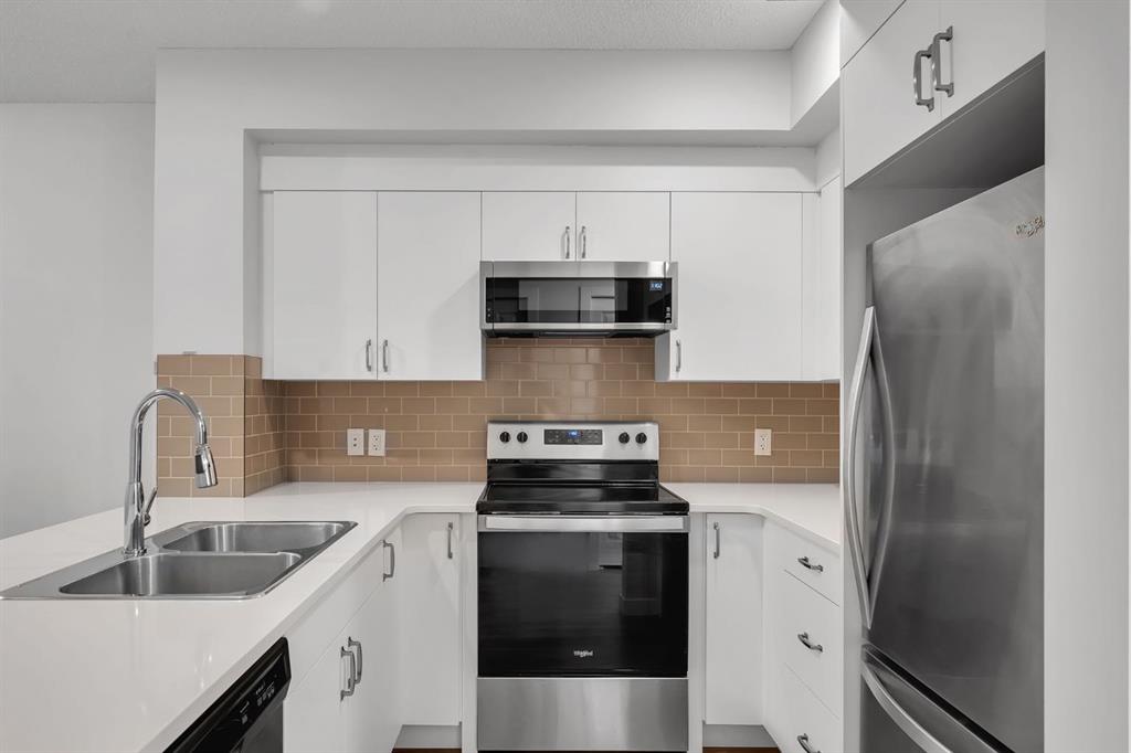 The heart of the home is the stunning chef’s kitchen, complete with upgraded stainless steel Whirlpool appliances, including a refrigerator, dishwasher, and built-in microwave hood fan. Crisp white cabinetry, quartz countertops, a stylish undermount sink, and a large window overlooking the backyard combine to create a bright and inviting cooking space. A pantry offers extra storage, and the dining and living areas provide the perfect backdrop for everyday living and entertaining.
