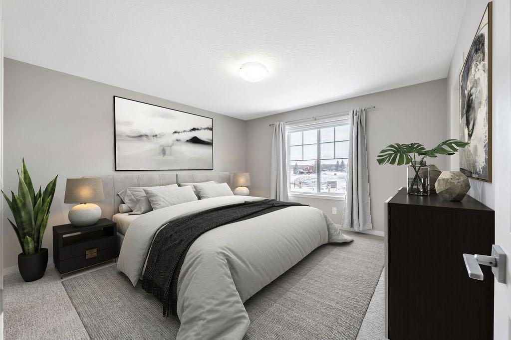 Upstairs, the primary bedroom easily accommodates a king-sized bed and furniture and includes a generous walk-in closet and a 3-piece ensuite with a walk-in shower. A second well-sized bedroom has convenient access to a 4-piece bathroom. The lofted bonus room is perfect for relaxing and can easily be converted into a third bedroom if desired. Second-floor laundry adds everyday convenience. The undeveloped basement offers a large window, bathroom rough-in, and endless potential for future development. Additional features include air conditioning, a water softener, a fully fenced yard, and a double detached garage.