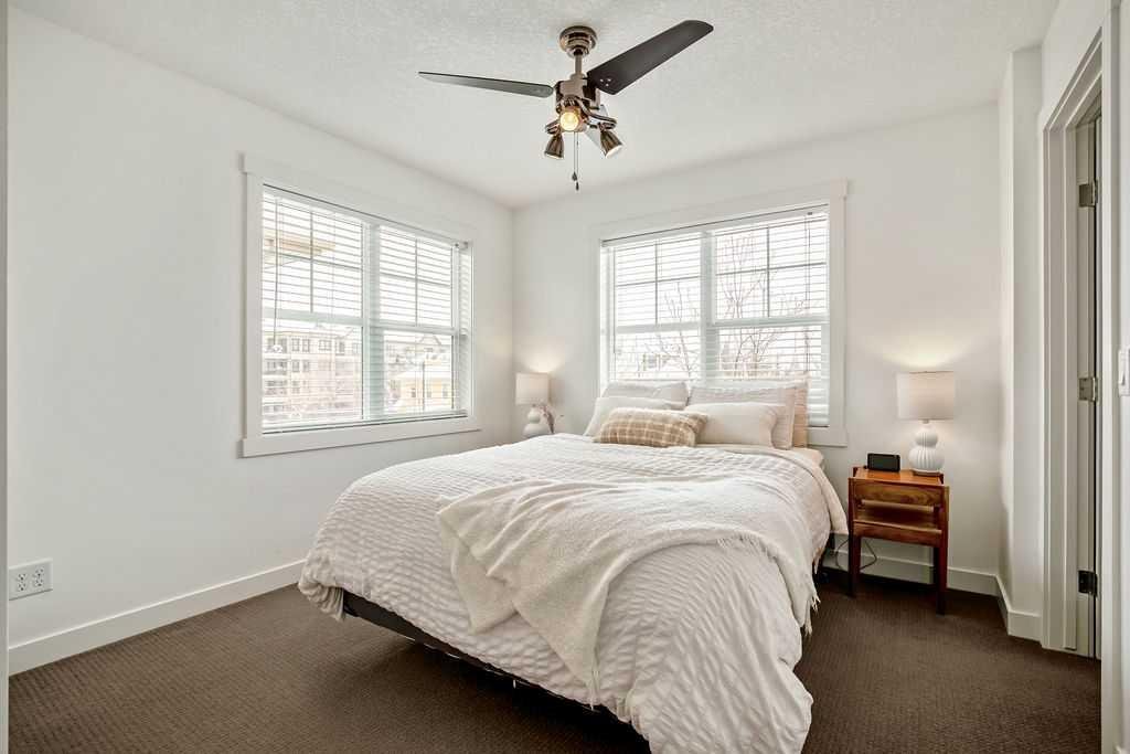 This like new END UNIT townhome is fresh, clean and bright and really is in truly move in ready condition. Perfectly positioned on the perimeter of Mosaic Mirage, it faces the street so you are not tucked away in the middle of the complex, offering easier access, additional parking and a more open, private feel. Featuring 2 bedrooms, 2.5 bathrooms and a double attached garage, it is ideally located in desirable McKenzie Towne, just steps from countless amenities. The bright and open main living area showcases a front living room with large windows, a full dining space and a timeless kitchen with shaker cabinets, quartz countertops and a wraparound flush eating bar. The main level is complete with a well appointed half bathroom featuring a full vanity with an under mount sink. Upstairs, you will find two primary bedrooms, each with its own walk in closet and full en suite, offering comfort and flexibility. The larger suite includes a walk in shower. A spacious second level storage closet includes full laundry hook ups, making it easy to relocate laundry upstairs if desired. The basement features a window for natural light and offers great potential as a work from home space, gym or additional living area. The double attached garage keeps your vehicle and belongings secure year round, while the front patio is perfect for relaxing in the summer. You will find everyday essentials and great local spots including Original Joe’s, Good Earth Coffeehouse, Subway, Sobeys, Home Depot, along with Starbucks and Tim Hortons all within a couple of blocks.