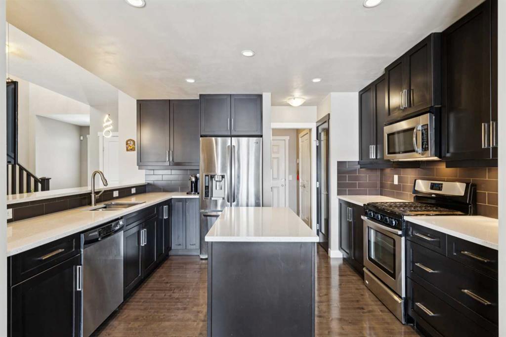 Lake living in ideal Mahogany location ~ This fully developed 2 storey home in Mahogany strikes a great balance between style, function, and location—just a short walk to the west beach for easy access to the lake. You’re welcomed by an open entryway that leads into a thoughtfully designed main floor, where the kitchen stands out with its breakfast bar, gas stove, large island, and an abundance of cabinetry and millwork. It flows naturally into a sunlit living room with oversized windows and a fireplace that adds warmth without overpowering the space. The dining area connects directly to the backyard through sliding doors, opening onto a deck with a gas line for BBQs—ideal for easy outdoor living. A practical wraparound layout links the kitchen through the pantry to the attached double garage and a tucked-away half bath. The finished basement offers flexible space with an additional bedroom, a bathroom, and a recreation room—ready to adapt to whatever you need. Upstairs, a bonus room provides a comfortable second living area, alongside three bedrooms including a well-sized primary retreat with its own balcony. The ensuite feels elevated with a soaking tub, walk-in shower, double vanity, and a large walk-in closet with built-in shelving. An upper-floor laundry room adds everyday convenience. With central A/C, great natural light, and a layout built for function, this home delivers both comfort and flexibility.