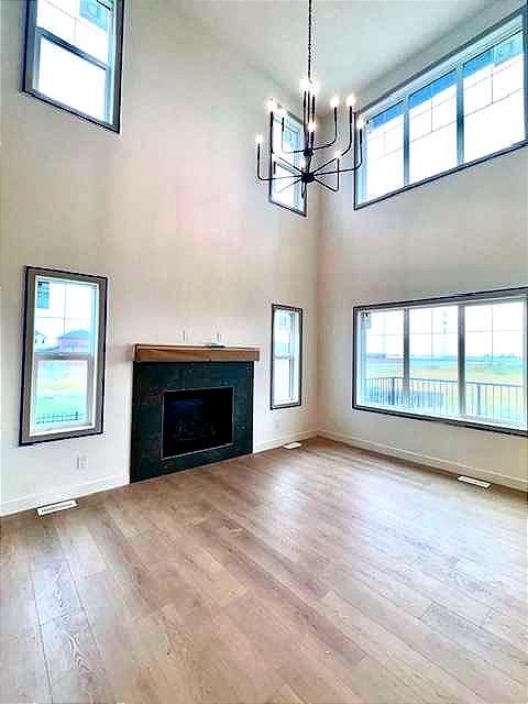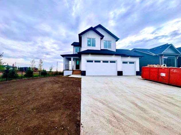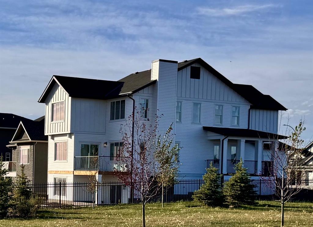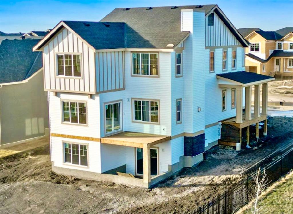This spectacular luxury 4 bedroom (upper) executive home sits on a HUGE 0.29 ACRE lot – complete with a WALK OUT basement and a WRAPAROUND PORCH that instantly charms. Step inside to find gorgeous vinyl plank flooring, a chef’s kitchen with beautiful oatmeal cabinetry, QUARTZ counters, a large island, and a corner PANTRY. The soaring OPEN-TO-ABOVE living room fills with natural light and features a sleek FIREPLACE while the dining area overlooks your expansive backyard. A main-floor bedroom with walk-in closet—perfect for guests, multi-generational living, or a private office—adds thoughtful flexibility. Upstairs, a stunning bonus room with built-in bookcase sets the tone for family living. The primary retreat is a true haven with a luxurious ENSUITE featuring a freestanding tub, walk-in shower, and large walk-in closet. Two additional bedrooms , a stylish family bath, and a UPPER laundry room complete the level. The walkout basement awaits your vision, with patio doors opening to a huge yard that stretches wide around the home. All this, just 10 minutes to Stoney Trail, with golf, shopping, schools (including a brand-new high school just 5 minutes walk away!), and every amenity at your fingertips. Experience the perfect blend of elegance, space, and lifestyle—your new home awaits!