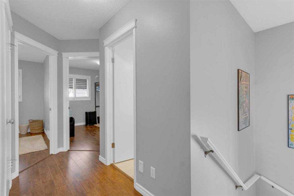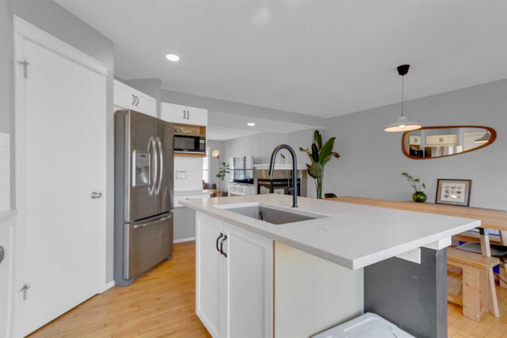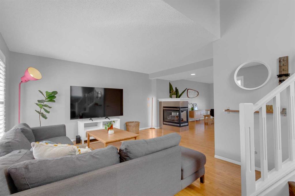 **** OPEN HOUSES … SATURDAY/SUNDAY 1:00-3:00 PM March 28 and 29. On one of the most neighbourly streets of McKenzie Towne, this lovely home is nestled in along a MATURE TREE-LINED STREET. A STAMPED CONCRETE WALKWAY leads you to the inviting FRONT PORCH creating a warm and welcoming entrance as well as a place to enjoy a quiet morning coffee or charming repast as the street awakens. This 1,339 square foot two-storey, features an OPEN PLAN main floor that is an inviting gathering place for countless coffee visits and neighbourhood play afternoons. HARDWOOD FLOORS run throughout the main living area, providing a timeless appeal. The THREE SIDED FIREPLACE adds to the welcoming ambiance, making the space cozy and inviting no matter the season. All windows are fitted with SHUTTERS, allowing for easy manipulation of natural sunlight or privacy, as desired. The spacious, functional kitchen boasts QUARTZ COUNTERTOPS and STAINLESS STEEL appliances, including a newer GAS RANGE (2021). The ISLAND provides a BREAKFAST COUNTER and a DUAL “NUGRANITE” SINK paired with PEARL SINK FAUCET (2021) that delivers convenience and style for any discerning chef. The LARGE DINING AREA is designed to encourage family and friends participation in shared meals and lively “Tell us all about your day” conversations. FRENCH DOORS from the kitchen open directly onto the WEST FACING BACKYARD OASIS for a visible connection with the kids, while they engage in their outdoor activities . The backyard is a true sanctuary, featuring an APPLE TREE, RASPBERRIES, RHUBARB, and VALIANT BLUE/PURPLE GRAPE VINES —which yielded six jars of jelly last year. A private, 17’ x 17’ 7” GRADE DECK with built-in PERIMETER LIGHTING is bordered by lined trees on each side, creating an ideal spot for PRIVATE SUMMER BARBEQUES or a relaxing outdoors evening. When summer temperatures rise, stay comfortable with AIR CONDITIONING (replaced in 2023) and west-side WINDOW AWNINGS. A PAVED BACK LANE leads to the property’s 2 car PARKING. Upstairs, the primary bedroom features a large WALK-IN CLOSET and a FOUR-PIECE ENSUITE. Two additional good-sized, tastefully decorated, bedrooms and a MAIN FOUR PIECE BATHROOM that completes the upper level. This GEM of a home is just a few minutes’ walk from the COMMUNITY WATER PARK and local SCHOOLS, making it an ideal choice for families. The basement is ready for your inspiration and requirements. Don’t miss your chance to see this beautiful FAMILY HOME— Why not take a moment to LINK INTO THE VIRTUAL TOUR ON THIS PROPERTY.