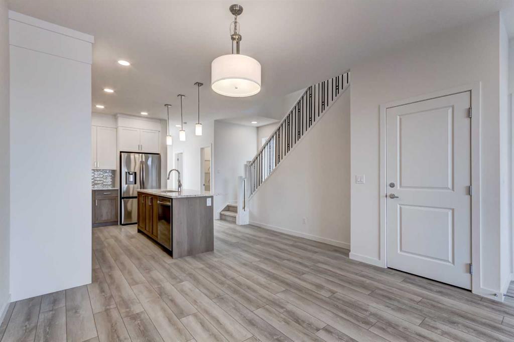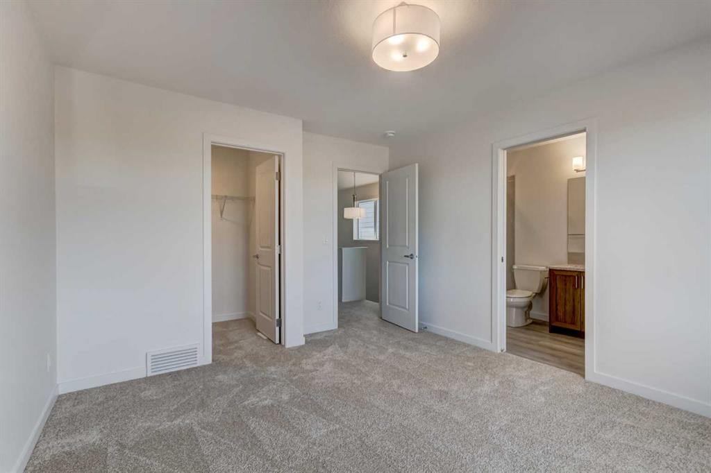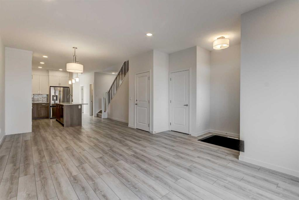 Introducing the COHEN: an amazing, BRAND NEW attached home by EXCEL HOMES offering 1744 SF above grade with a FULLY DEVELOPED, TWO BEDROOM LEGAL SUITE, W/SEPARATE ENTRANCE. This beauty is perfectly situated in Seton Ridge, across from a park, sports field & future school. SETON RIDGE, Calgary’s newest urban hub directly south of Seton with sweeping views of the Bow River Valley & minutes from the bustling Seton Urban District with its restaurants, theatres, shopping, and essential services. Residents will love access to the SHOA Club, a 14,000 sq. ft. recreation facility. You’ll love the views & value the privacy of no homes in front of yours! Step into a life of luxury and convenience where every detail has been meticulously crafted for comfort and style. Enjoy the benefits of living in an established neighborhood that brings a plethora of amenities right to your doorstep, along with swift access to major highways. The COHEN offers a sprawling 1726 sf of thoughtfully designed living space, perfect for both families and entertaining. The open floor plan, complemented by neutral designer tones, creates a welcoming atmosphere that is both elegant and comfortable. The chef-quality kitchen stands as the heart of the home, equipped with ceiling-height cabinets, two banks of pot/pan drawers, and upgraded stainless steel appliances, including chimney fan, and built-in microwave. The engineered stone countertops, a large island with seating, and a convenient pantry make it a dream kitchen for those who love to cook and entertain. The main floor also features versatile luxury vinyl plank flooring. On the main floor you’ll also find a FLEX ROOM that can be used as a home office, guest bedroom or playroom. and half bath for convenience. Up to the second level where leisure meets luxury in the large central bonus room featuring vaulted ceilings & pot lighting — ideal for movie nights and family gatherings. The primary bedroom is a true retreat, boasting a walk-in closet and a spa-like ensuite with stone vanity tops, dual sinks & double sized shower. Two more generously sized bedrooms provide ample space and easy access to the main bathroom. The convenience continues with a laundry room strategically located on the same floor. The possibilities extend into the FULLY DEVELOPED basement – SEPERATE SIDE ENTRY to your LEGAL TWO BEDROOM BASEMENT SUITE. Your suite is built to upstairs standards & offers TWO bedrooms, TWO FULL BATHS, full kitchen w/lots of storage cabinets, SS appliances, PRIVATE LAUNDRY, vinyl plank flooring. Don’t miss the chance to own this never-lived-in gem with quick possession available. This home will include front sod, gravel to the side yard and a 20×20 gravel parking pad.