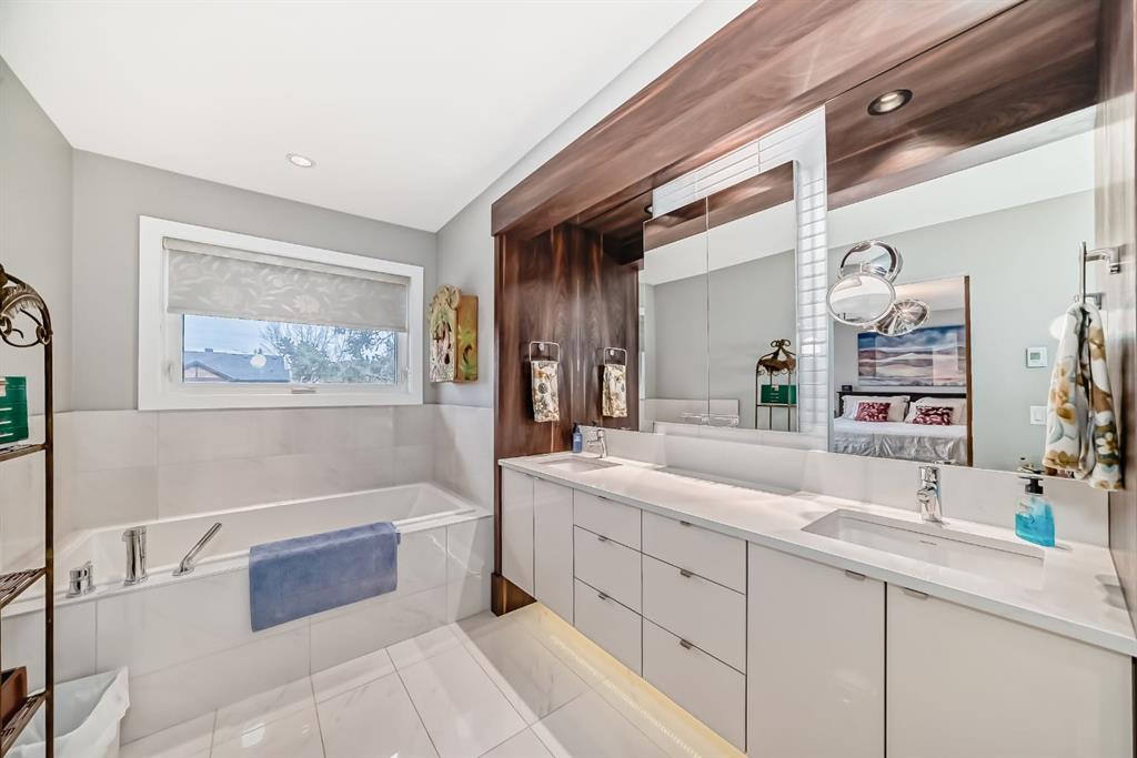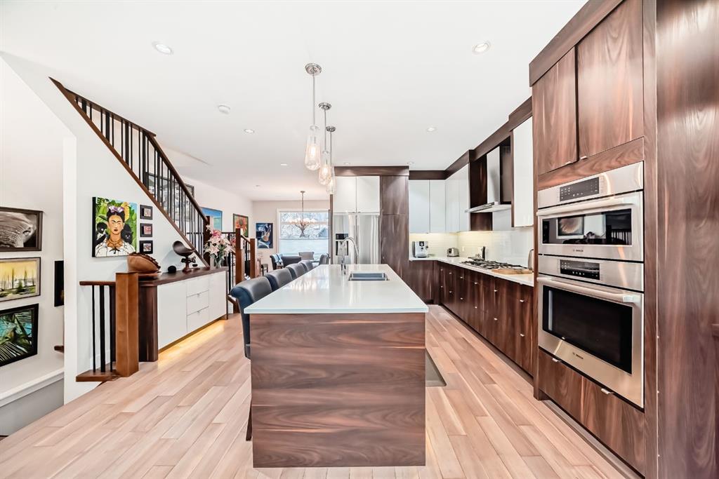 Additional highlights include two decks, a double detached garage, roughed-in A/C, landscaped yard, and exceptional curb appeal. Ideally located near Edworthy Park with access to scenic walking and biking paths, this home offers the perfect blend of modern luxury and inner-city convenience.