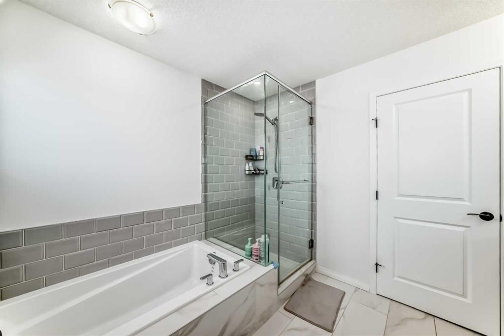 Upstairs, the spacious primary suite offers a walk-in closet and a private 5-piece ensuite with dual sinks, a soaker tub, and separate shower. Two additional bedrooms, a 4-piece bathroom with dual sinks, and upper-level laundry provide practical family living.