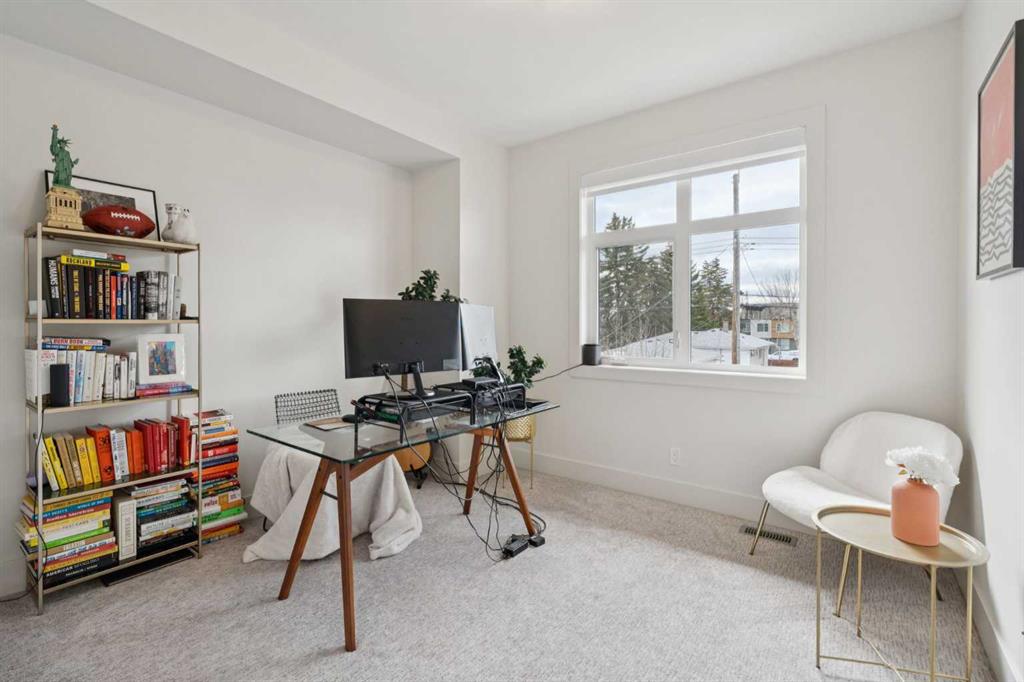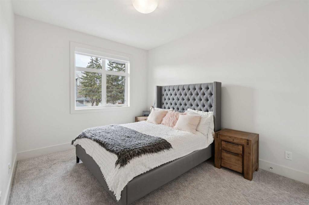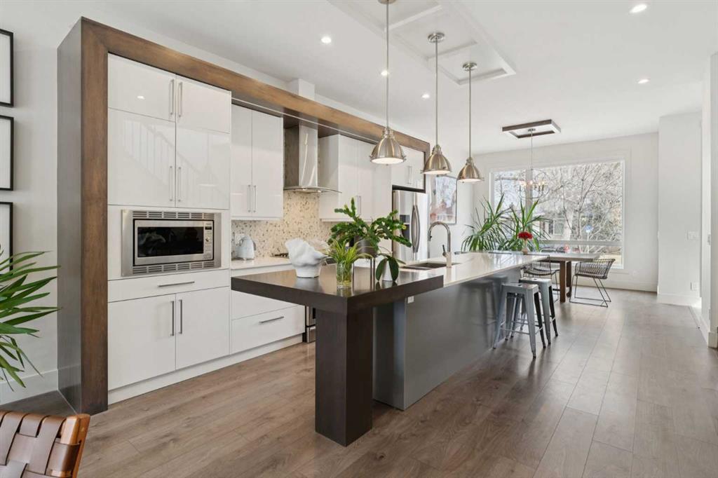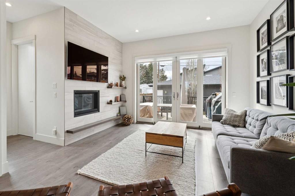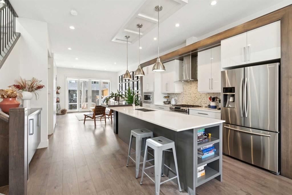 OPEN HOUSE SAT APRIL 25th & SUN 26th 12-2:00PM | Welcome to this stunning semi-detached home on a quiet, tree-lined street in sought-after Glenbrook. Impeccably maintained and truly move-in ready, it offers standout curb appeal and a stylish front facade. Inside, the main level features 10-foot ceilings and oversized front-facing windows that flood the home with natural light from morning through afternoon. The showpiece kitchen is anchored by a large, two-tier quartz island with seating—ideal for everyday living and entertaining. Enjoy an upgraded stainless steel appliance package, including a gas range and oven with warming drawer, elegant hood fan, French-door fridge with exterior water, and built-in microwave and dishwasher. The bright dining area overlooks the leafy street and comfortably fits an 8-person table. At the back of the home, the cozy living room centers around a gas fireplace, with French doors opening to the deck for seamless indoor/outdoor living. The west-facing backyard and deck soak up sun all afternoon, making it the perfect summer hangout. The deck offers space for multiple seating zones and includes a gas line for your BBQ. A discreet main-floor powder room is tucked off the mudroom, which features smart storage and custom coat hooks. Upstairs, you’ll find 9-foot ceilings, three bedrooms, and a spacious primary retreat with a spa-inspired ensuite featuring a skylight, dual sinks, a large tiled glass shower, and a freestanding soaker tub—plus a generous walk-in closet and an oversized window. Two additional bedrooms share a well-appointed full bathroom, and the dedicated laundry room provides extra space for storage and drying. The basement is fresh and unspoiled—ready for a home gym, games room, or future development. Complete with a double detached garage, full blinds package, and a recent A/C unit, this home checks every box. Enjoy an exceptional inner-city location close to amenities, schools, and downtown.