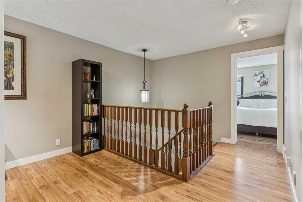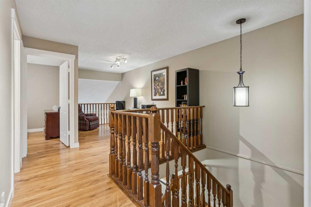 Experience this rare opportunity to live in TIFFANY LANE, the highly desirable and unique townhome complex that captures and creates the charm and serenity of a mountain retreat in the city—right in the heart of the vibrant community of Woodbine! This exceptional home is a private sanctuary, offering over 1,920 square feet of beautifully renovated living space across three levels, blending tranquillity, modern luxury and convenience. Step into the bright, inviting foyer that opens to the warm, open-concept main floor, filled with natural light and rich, wide-plank hardwood flooring. The stunning vaulted ceiling living room, anchored by a cozy Napoleon gas fireplace, creates the perfect setting for both entertaining and relaxing evenings at home. The gourmet kitchen features abundant cabinetry, granite countertops, stainless steel appliances, under-cabinet lighting, and a sit-down breakfast bar with additional storage. A spacious dining room easily accommodates both everyday living and larger gatherings. Upstairs, the luxurious primary suite offers a peaceful retreat with dual closets and a stylish three-piece ensuite. The second oversized bedroom and the full bathroom with a soaker tub provide ample space for family or guests. The large loft is ideal for a home office or an additional lounge area. Triple-pane windows on the upper level offer enhanced energy efficiency, added comfort, and quiet living. The fully developed basement expands the living space with a large recreation room—perfect for a home gym, media room, or guest space—along with excellent storage. Outside, enjoy the private, treed, fully fenced front patio surrounded by nature. Ideal for summer BBQs with a gas hookup and relaxing at the end of the day. A double attached garage adds everyday convenience, complete with built-in storage. Ideally located just steps from the full amenities of Woodbine Square. Walk to Fish Creek Park – one of North America’s largest urban parks with access to kilometres of scenic walking and biking trails. It is also close to transit and has easy access to Stony Trail. A fantastic opportunity you do not want to miss! Love where you live!