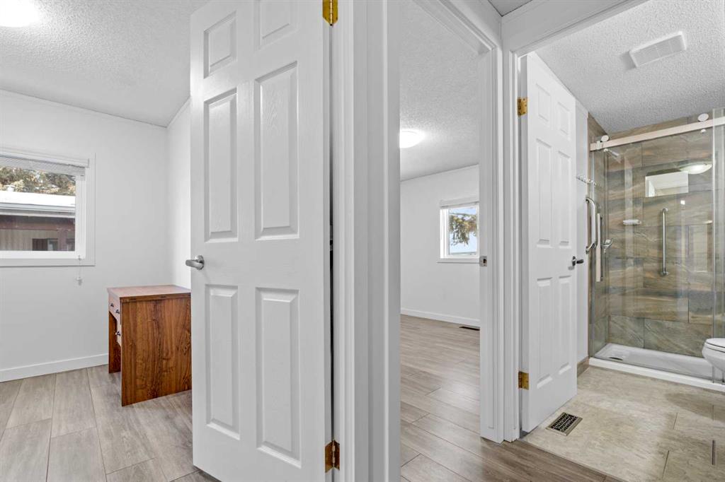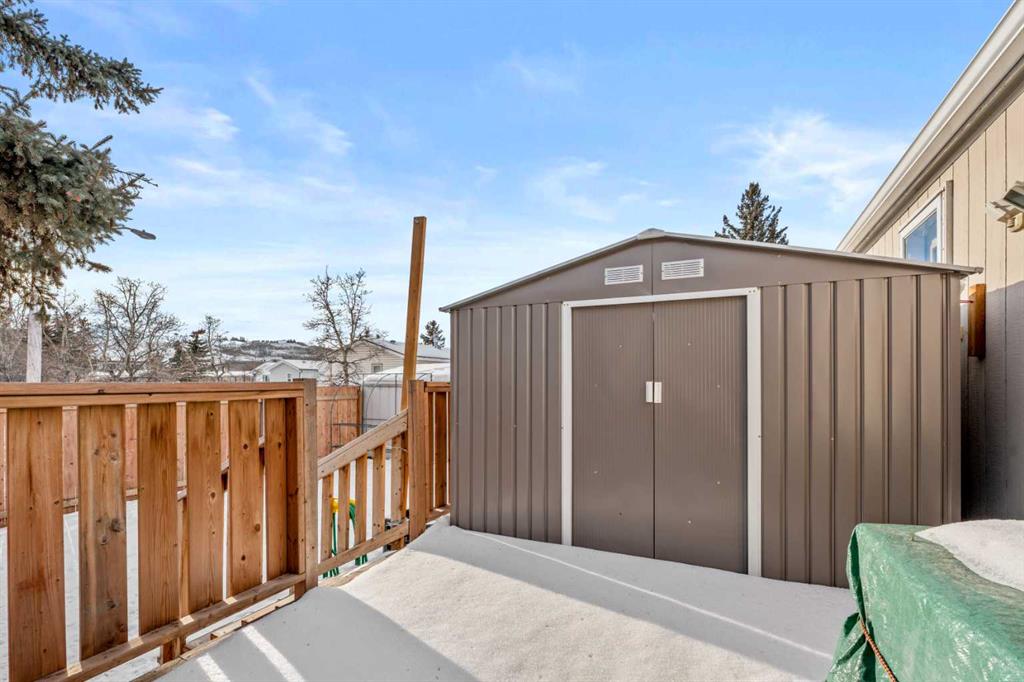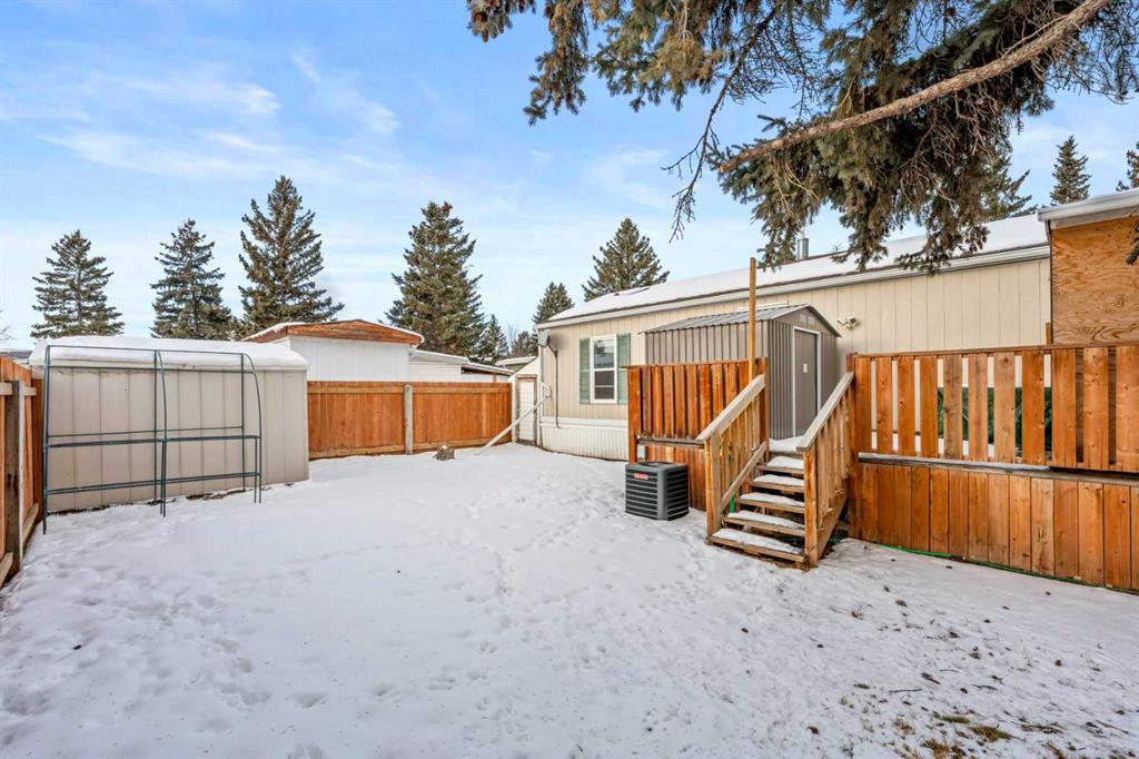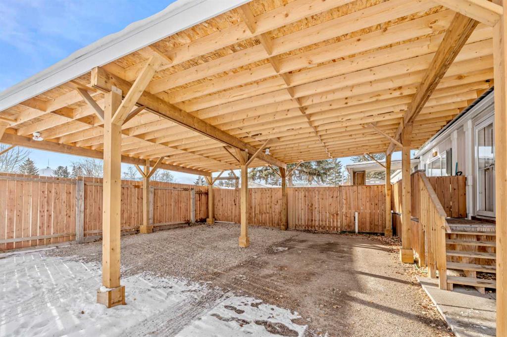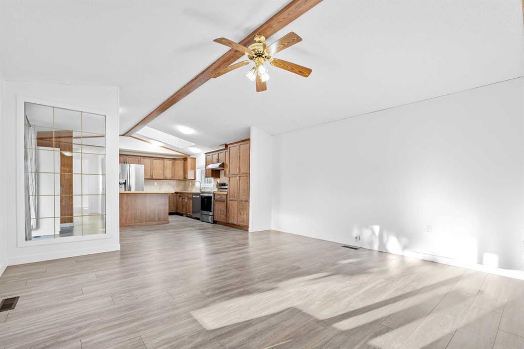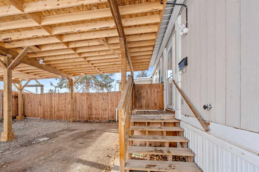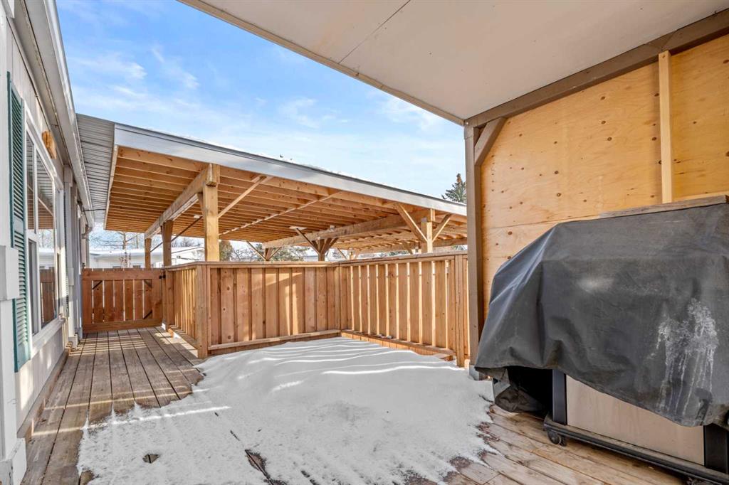Welcome to Greenwood Village. This 3 bed, 2 bath, 1,221 sf mobile home is truly move-in ready. All upgrades and updates have been done and you will love the bright, open floorplan. It has been meticulously maintained, presenting in excellent condition. Upon arrival, you will notice the double carport, providing parking for up to four vehicles. The spacious, fully fenced yard is adjacent to a playground, one of several within Greenwood Village. The well-appointed entry leads to two bedrooms and a bathroom at the front of the home, a generous living room with vaulted, beamed ceiling, large windows, and laminate flooring throughout. The kitchen benefits from a skylight that fills the space with natural light, ample cabinetry, a sizable island offering extra storage, and patio doors opening onto a large deck. The primary bedroom includes a four-piece ensuite, walk-in closet, and accommodates a king-size bed. The additional bedrooms are also spacious, and the front bedroom offers a Jack-and-Jill three-piece ensuite. A separate laundry room with a sink adds further convenience. Recent improvements include a new Furnace and Central Air Conditioning (Fall 2023), a Stainless Steel appliance package (Fall 2022) featuring a double-door refrigerator with bottom-mounted freezer, water, and ice dispenser, as well as a newer hot water tank, Vacu-Flo system, and a recently constructed double carport. The kitchen patio doors lead to a substantial deck equipped with a Weber BBQ. The home is conveniently located minutes from Greenwich Village, renowned for its Farmers Market West, and provides easy access to Stoney Trail Ring Road for citywide travel and Highway 1 for trips to the mountains. The monthly lease fee of $1,375 covers water, sewer, garbage pickup, and snow removal. Greenwood Village offers a clubhouse with activities throughout the year and is serviced by Calgary Transit and a school bus route. Lease approval is required, and pets are permitted upon approval.