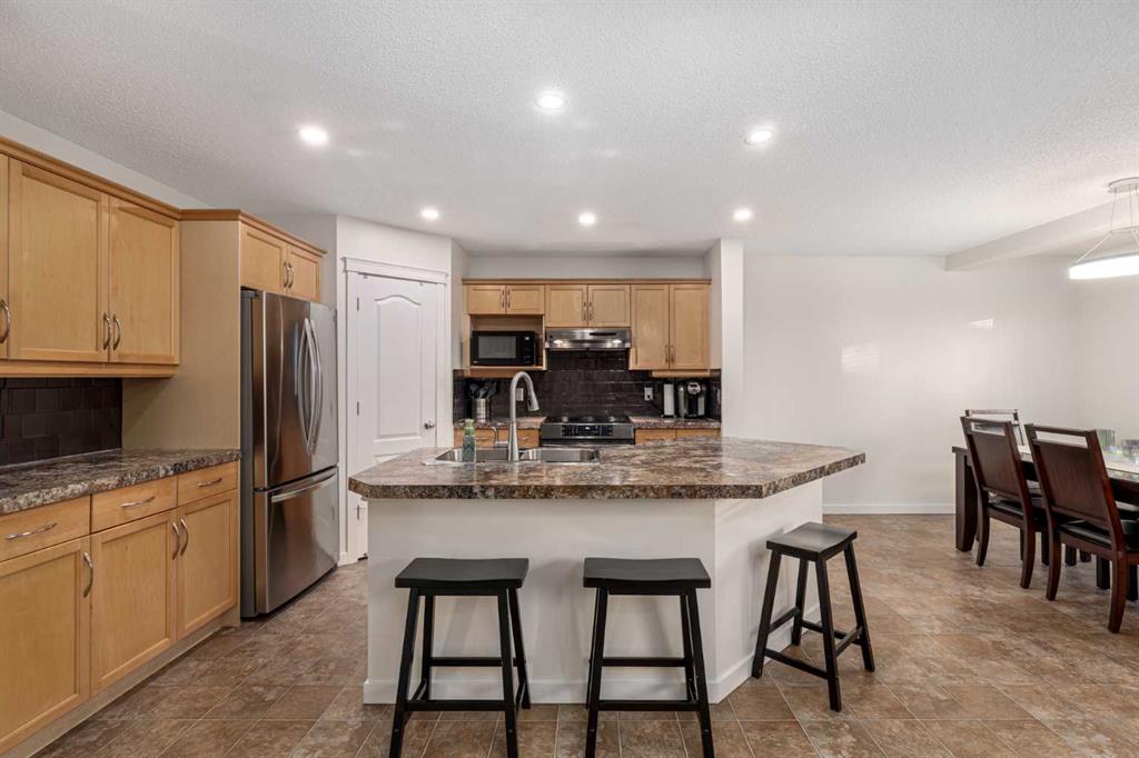 Welcome to this beautifully maintained 2-storey home in the family-friendly community of Evanston, perfectly situated on a quiet cul-de-sac just steps from schools, parks, and nearby shopping. Offering over 2,400 sq. ft. of developed living space, this home provides exceptional functionality for large or multi-generational families. The main floor features an inviting open layout with a bright living area, a well-appointed kitchen, and a dining space that opens to the backyard deck—ideal for entertaining or family barbecues. Upstairs, you’ll find four spacious bedrooms, including a primary suite with a private ensuite and lots of natural light. The fully developed basement adds even more flexibility with an additional bedroom, full bathroom, and a cozy rec room perfect for movie nights or game nights. Recent updates include a new roof, downspouts, and facia (2024), fresh paint throughout, and new deck boards (2024). Additional highlights include central A/C, a double attached garage that’s insulated, equipped with an electric heater and epoxy floors, and a large fenced yard with multiple storage sheds. Enjoy easy access to Stoney Trail and Deerfoot, nearby schools, and an abundance of shopping and amenities. This is a rare find with 4 bedrooms upstairs—a perfect fit for growing families seeking space, comfort, and convenience in one of Calgary’s most desirable northwest communities.