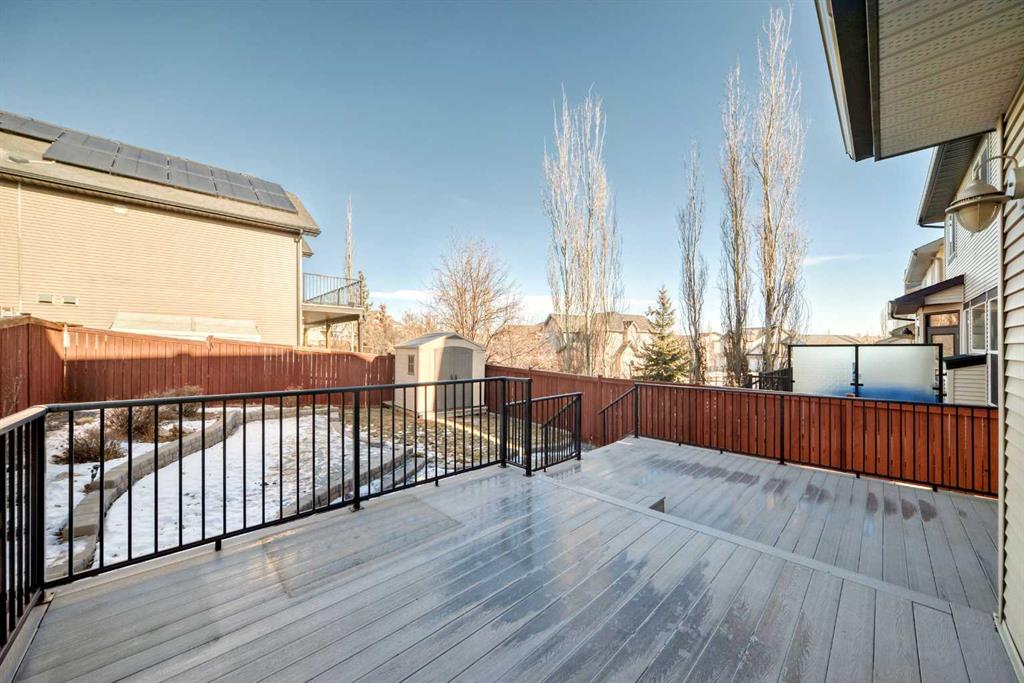 The dream kitchen is a standout, featuring granite countertops, updated appliances, and a large island ideal for bar seating. The adjacent dining area opens through sliding doors to the updated deck and a thoughtfully landscaped backyard. Enjoy a low-maintenance outdoor space with professionally designed stone tiering that separates planting areas and enhances the usability of the yard. A spacious backyard shed provides excellent additional storage. The large deck overlooks the yard, creating the perfect spot for both entertaining and everyday enjoyment.