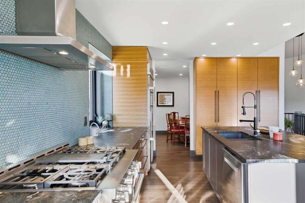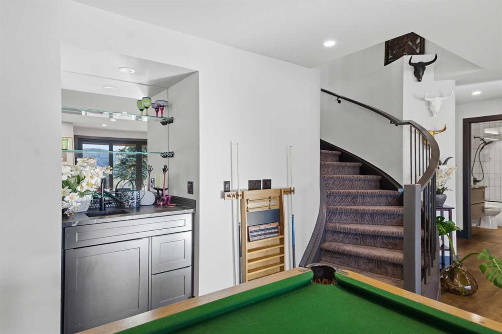 Experience luxury living in the heart of Priddis Greens with this beautifully renovated Augusta-model villa bungalow, perfectly positioned to capture sweeping views of the mountains, valley, and pristine golf course. Offering over 1800 sq ft on the main level and more than 3200 sq ft of total living space, this home blends elegance with comfort. The gourmet kitchen features two-tone cabinetry, granite counters, premium stainless appliances, a 5-burner gas stove, and a striking designer penny-tile backsplash. The spacious primary suite includes a stunning spa-inspired ensuite with heated floors, oversized multi-spray shower, dual sinks, and a skylight. Vaulted and flat ceilings, wide-plank flooring, custom walnut built-ins, skylights, and an impressive, curved staircase elevate the main floor. The walk-out basement is bright and inviting with wall-to-wall windows, generous entertainment areas surrounding the 3 sided fireplace. Play pool or cards while watching the big screen, a full bath, and a large bedroom. Additional upgrades include LUX triple-pane windows, two new furnaces, central A/C, enhanced soundproofing, and an oversized double garage with extra storage and 220v, extra space for you golf club and bikes. Also set up for 220v Hot Tub out back. Set within a well-managed condo community with a strong reserve fund, this exceptional villa offers unmatched tranquility, convenience, and lifestyle — from cross-country skiing at your doorstep to golfing just steps away.