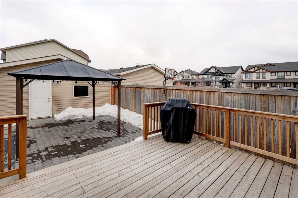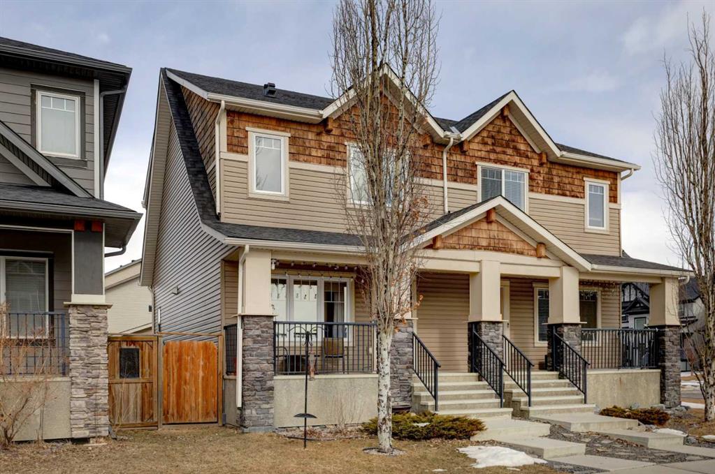 Welcome to this meticulously maintained fully developed semi-detached home offering 1302 sq ft above grade in the sought-after community of Skyview Ranch. The bright open-concept main floor is designed for both everyday living and entertaining, featuring durable wide-plank laminate flooring (2022), a stylish kitchen with stainless steel appliances (2021), quartz countertops, full-height cabinetry and a central island, along with a functional mudroom and 2-piece powder room. Step outside to a fully fenced, low-maintenance backyard with a large deck, perfect for summer evenings. Upstairs you’ll find 3 spacious bedrooms including a primary retreat with walk-in closet and private ensuite, plus a full bathroom and convenient upper-level laundry. The permitted fully finished basement (2024) adds valuable living space with a rec room, 2-piece bathroom and ample storage. Extensive recent upgrades include: hail-resistant shingles (2025), siding (2025), high-efficiency furnace (2025), central air conditioning (2025), smart thermostat system (2025), replacement of some windows with triple-pane Low-E windows (2022) and Hunter Douglas window coverings (2021–2022). Complete with a detached double garage and located in a family-friendly, walkable neighbourhood close to schools, parks, shopping, transit and major roadways with quick access to downtown Calgary and the airport, this turn-key home offers exceptional value and convenience.