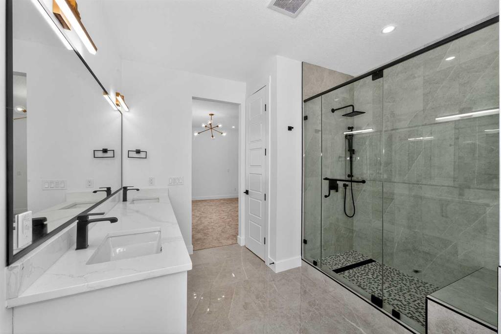 This exceptional, newly constructed two-storey residence is located in the prestigious Waterford Estates community in Chestermere, offering thoughtfully designed living space that perfectly balances luxury, functionality, and modern elegance. Ideal for families seeking both comfort and sophistication, this home features five generously sized bedrooms and four full bathrooms, all finished with high-quality materials and attention to detail. The main floor is designed with an open-concept layout and showcases impressive proportions throughout. A spacious family room and an expansive formal living room provide multiple areas for relaxation and entertaining, while the dining area seamlessly connects to the well-appointed kitchen. The chef-inspired kitchen is complemented by a dedicated servery, offering added convenience for hosting and everyday use. A main-floor bedroom with its own private 3-piece ensuite enhances flexibility for guests or multi-generational living, while an additional 2-piece bathroom completes the level. The oversized garage ensures ample space for vehicles and storage. Upstairs, the home continues to impress with a thoughtfully planned layout featuring four additional bedrooms. The primary suite serves as a private retreat, complete with a luxurious 5-piece ensuite. Additional bedrooms are generously sized and well-served by a combination of private and shared bathrooms, including a 3-piece ensuite and a 4-piece bath. A versatile den provides the perfect space for a home office, study, or lounge area, while the dedicated laundry room adds everyday practicality. The expansive unfinished basement offers incredible potential for future development, allowing homeowners to customize the space to suit their lifestyle—whether as additional living space, a recreation area, or a home gym. Situated on a spacious lot, the property provides ample outdoor space for gardening, recreation, or relaxation. Located in a highly desirable and family-friendly neighborhood, residents enjoy convenient access to schools, shopping, and recreational amenities. This home represents a rare opportunity to own a refined and spacious property in one of Chestermere’s most sought-after communities.