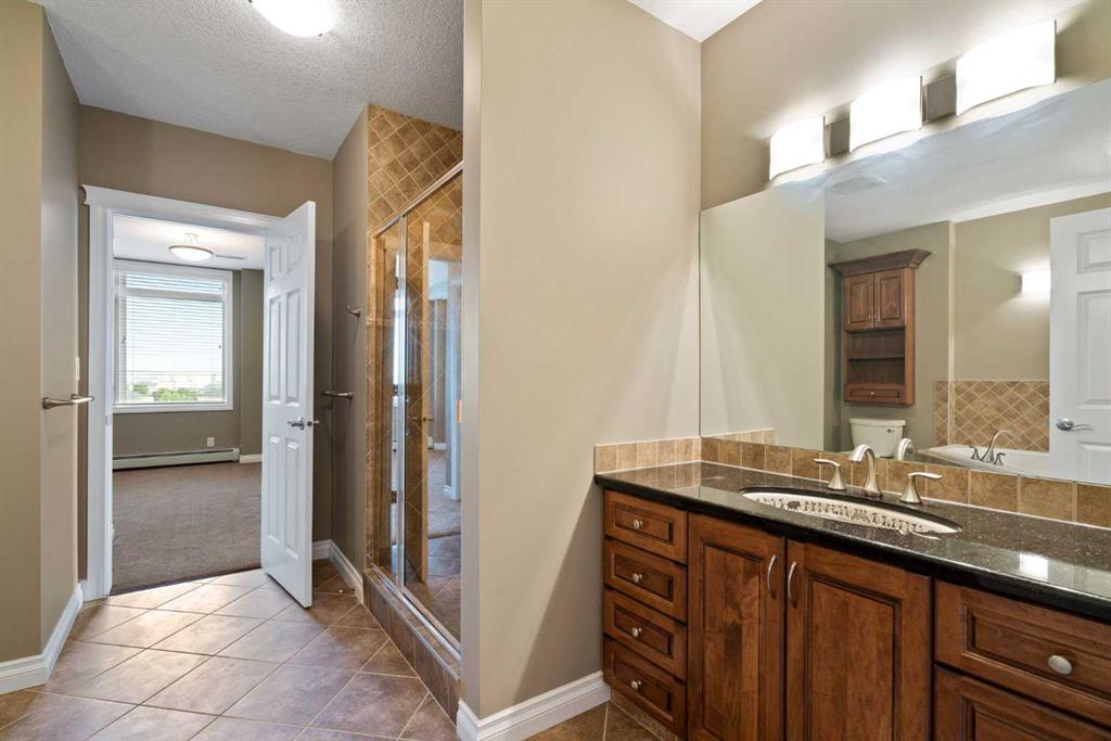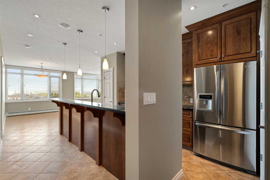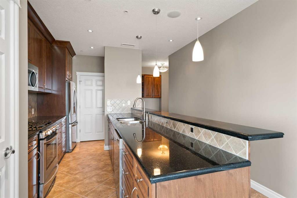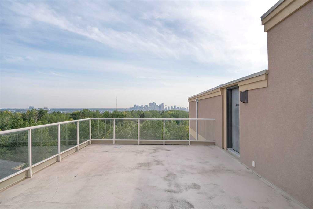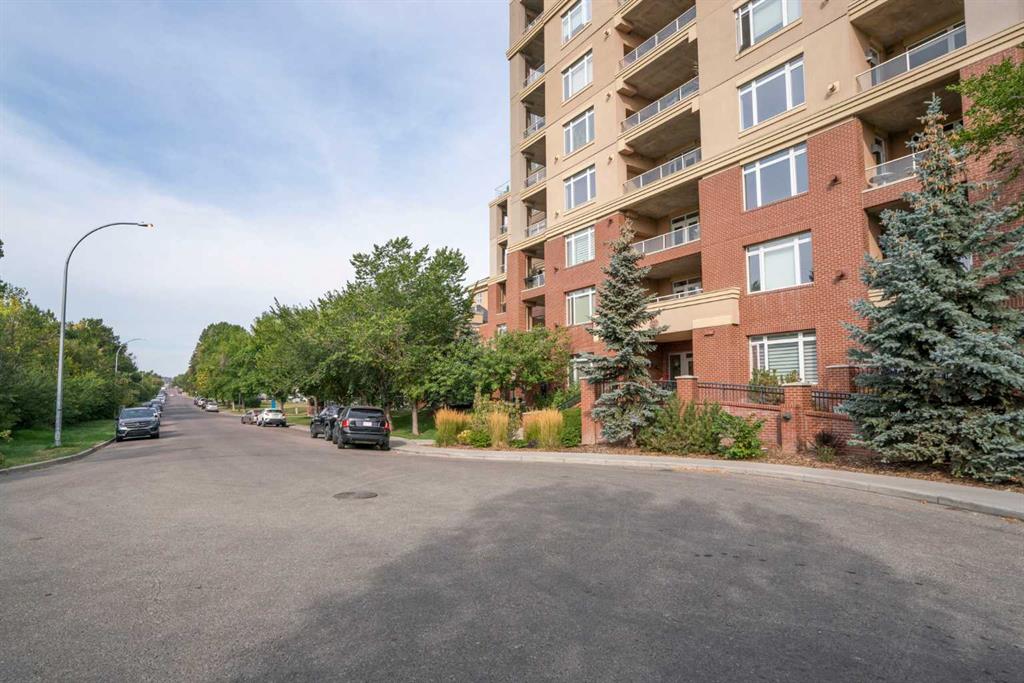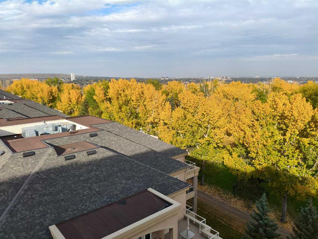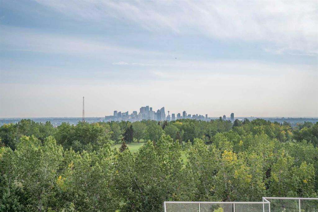 PANORAMIC unobstructed views of the city while overlooking treetops of the Shaganappi Golf Course from this stunning condo. +1462 SQ FT of versatile space. Only 8 units comprise the 8th floor. Unit features 2 large Bedrooms, 2 full Bathrooms, built in desk, chef inspired kitchen, granite counters, full ceiling height cabinetry, a breakfast bar, high-end stainless steel appliances, gas stove top and a new range hood fan. Owners upgraded washer/dryer machine to a more efficient combination unit. Accentuated by large surrounding windows at every step add tons of natural light to provide an awe inspiring view from every direction throughout entire property. Primary has a luxurious 5pc en-suite with a large glass enclosed shower, corner soaker tub and 2 lovely granite vanities. Entertainers delight, huge patio (~13′ x 14′) with a natural gas hook up for the BBQ. Further features include knockdown ceilings, upgraded lighting, built in speaker system, upgraded underlay and ceramic tile. TWO titled underground heated parking stalls, storage in parkade and comfortable central A/C. Building amenities include a fitness facility, guest suite, party room, recreation area, bike storage, car wash & craft/wood working area in the parkade. Turn key condo is located close to numerous amenities, shopping, parks, schools, easy access to downtown via Bow Trail or a few blocks to the C-train or public golf course! Don’t miss this one. Rarely do these sub-penthouses become available. Call to see today!