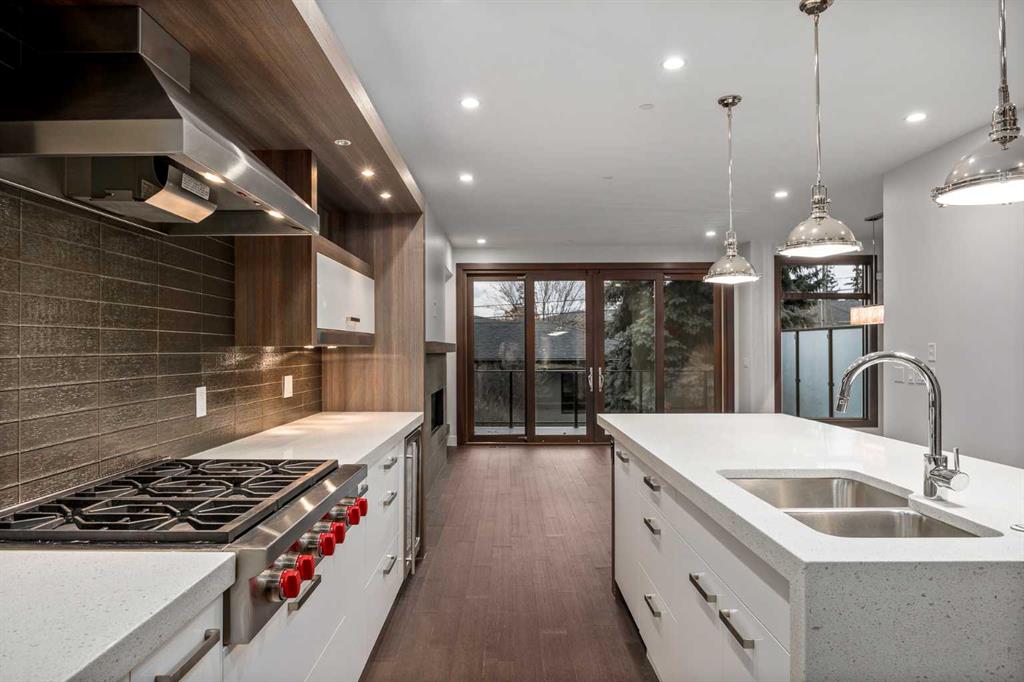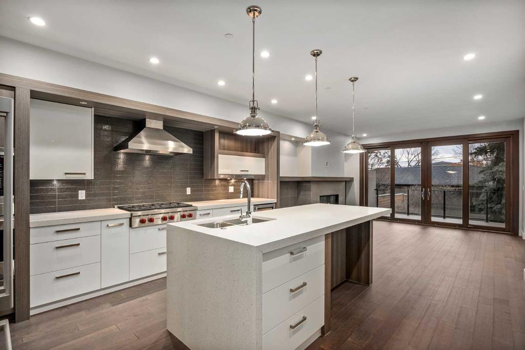 This, renovated, better than new modern home is located in desirable, prestige and secure SW community of Altadore. Contemporary 3 storey , featuring hardwood throughout 3 levels, cool brick wall, 9’ceilings, 8′ solid core doors, metal with glass railings, 3 fireplaces, in floor heat and much more. On the main floor you will find open kitchen with Wolf appliances, walk-in-pantry and custom cabinetry, living room with cozy fireplace and sliding door to a spacious patio. Convenient front of the house main floor office. On the second level you will enjoy luxurious master retreat with double side fireplace, tub, steam shower and large walking closet. Convenient laundry room and two additional bedrooms. One level up loft, with 3 skylights, full bath, bar and 2 decks with views and fireplace. Basement is fully finished with bedroom, full bath and huge recreation/ home theatre room and storage room. Air conditioning, under ground sprinklers, insulated garage. Home shows amazing. Just move in and enjoy the Summer!