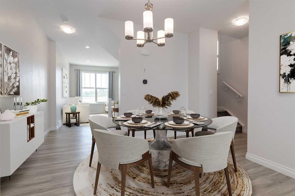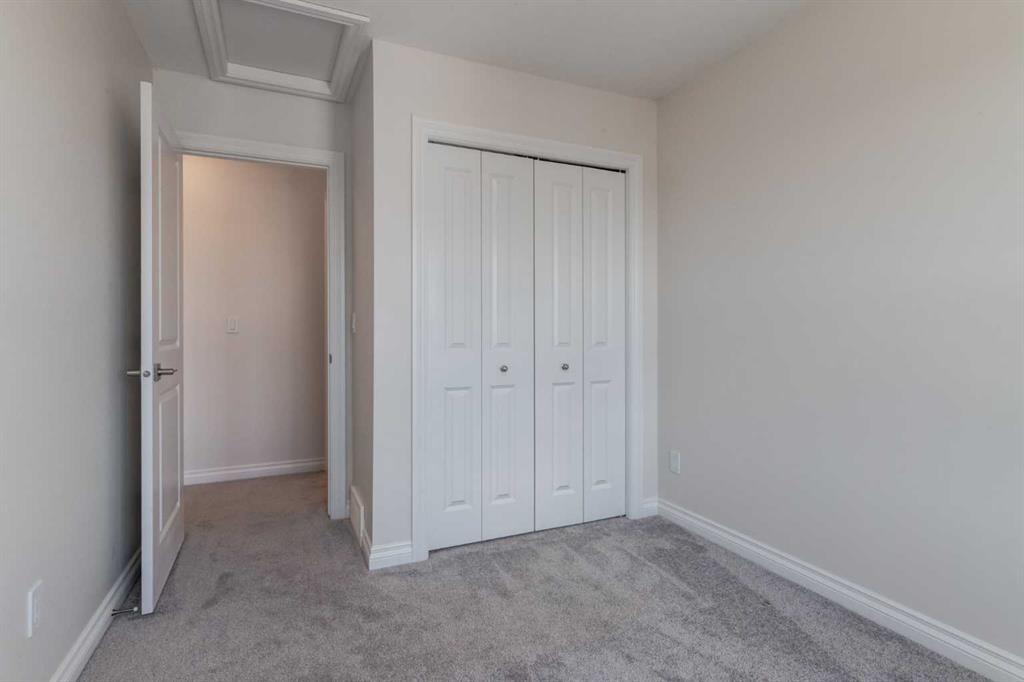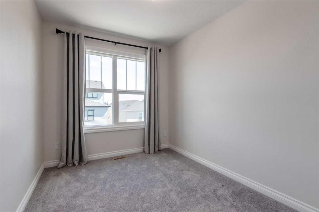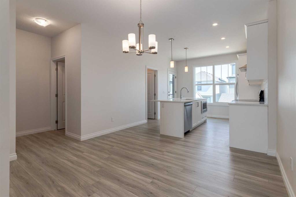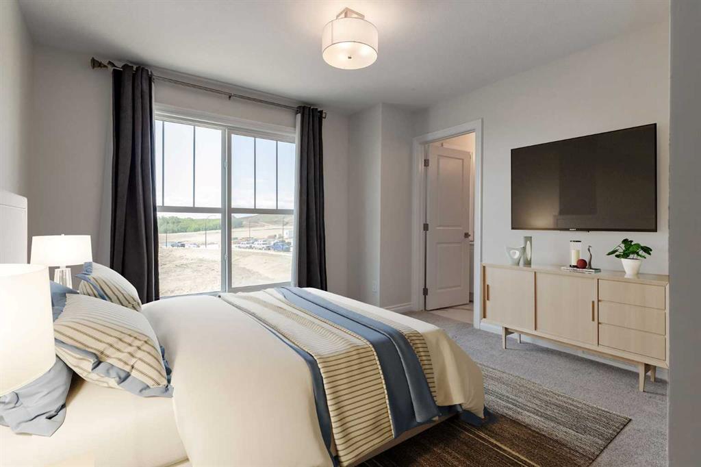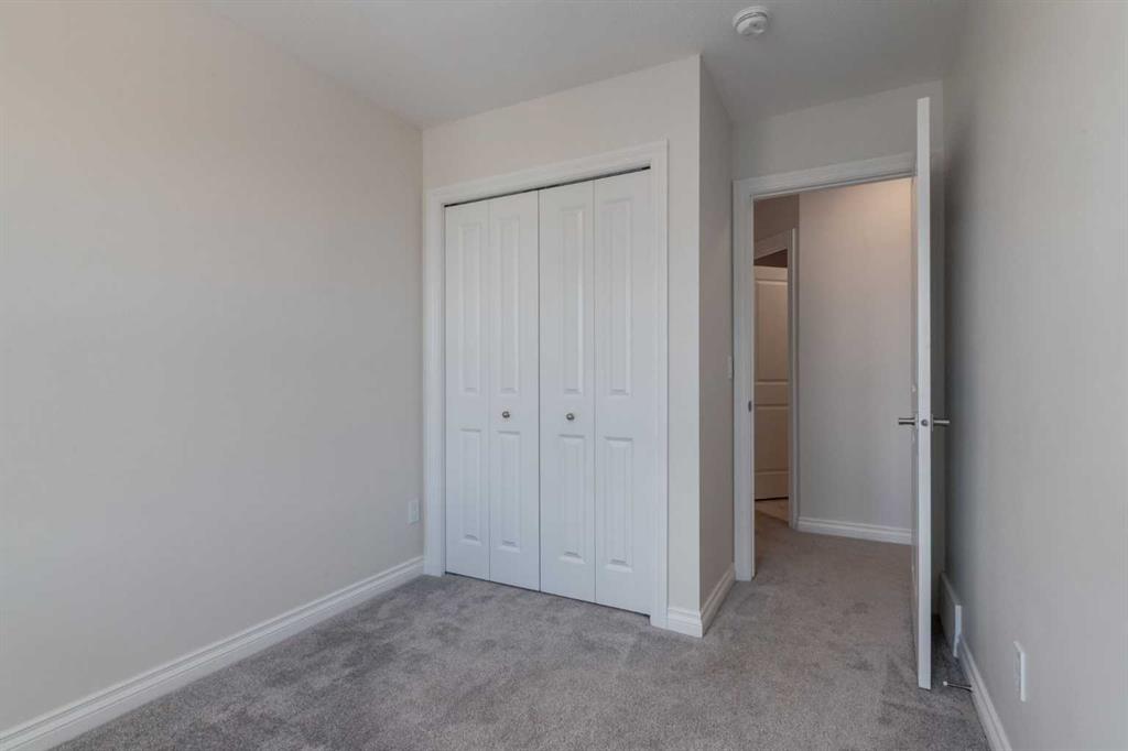 Welcome to this upscale, 2024-built townhome with no condo fees in the vibrant new community of Alpine Park—a must-see neighbourhood on Calgary’s southwest edge. Enjoy quick access to Stoney Trail and the nearby Taza Development, combining convenience with modern suburban living. The main floor features a versatile bedroom or private home office, perfect for remote work or guests. You’ll also find direct access to the basement and double attached rear garage. The second level boasts an open-concept design with a bright, spacious living room and a timeless white kitchen featuring brand new stainless steel appliances, quartz countertops, 9-ft ceilings, a walk-in pantry, large island, and durable luxury vinyl plank flooring throughout. Upstairs, there are three more bedrooms, a convenient full laundry room, including a sunlit primary suite with a large front window and a double vanity ensuite. And yes—window coverings are already installed and included. Just in time for you to move in and enjoy the summer in your new home.