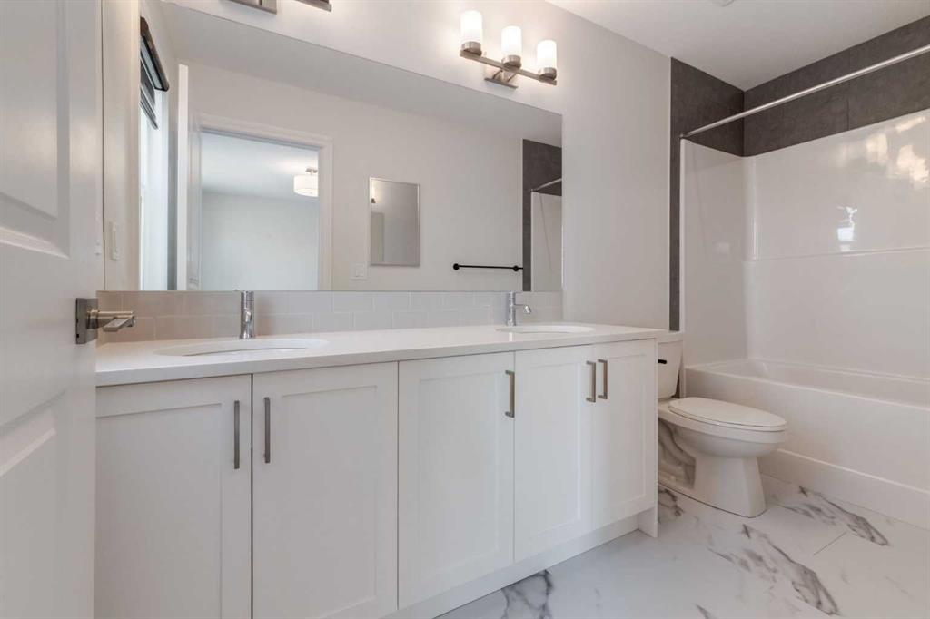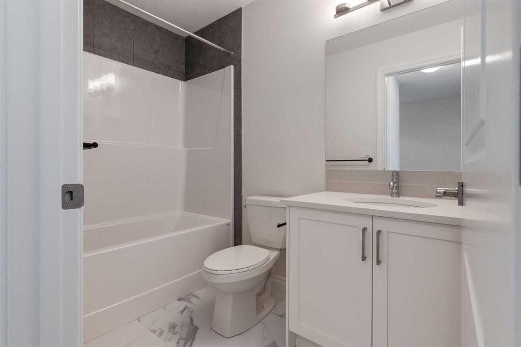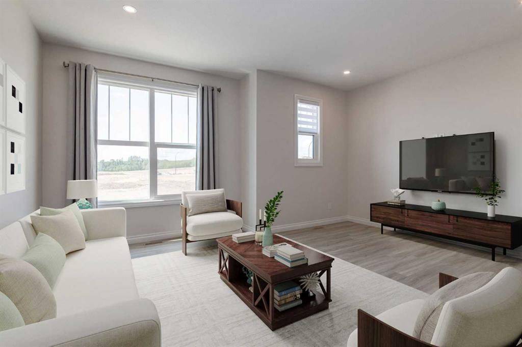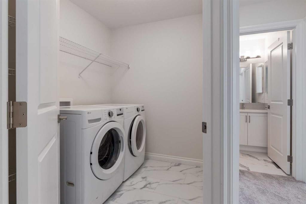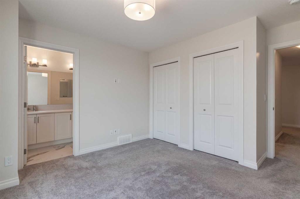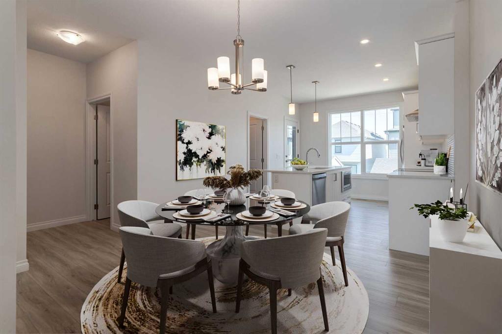 Welcome to this upscale, 2024-built townhome with no condo fees in the vibrant new community of Alpine Park—a must-see neighbourhood on Calgary’s southwest edge. Enjoy quick access to Stoney Trail and the nearby Taza Development, combining convenience with modern suburban living. The main floor features a versatile bedroom or private home office, perfect for remote work or guests. You’ll also find direct access to the basement and double attached rear garage. The second level boasts an open-concept design with a bright, spacious living room and a timeless white kitchen featuring brand new stainless steel appliances, quartz countertops, 9-ft ceilings, a walk-in pantry, large island, and durable luxury vinyl plank flooring throughout. Upstairs, there are three more bedrooms, a convenient full laundry room, including a sunlit primary suite with a large front window and a double vanity ensuite. And yes—window coverings are already installed and included. Just in time for you to move in and enjoy the summer in your new home.