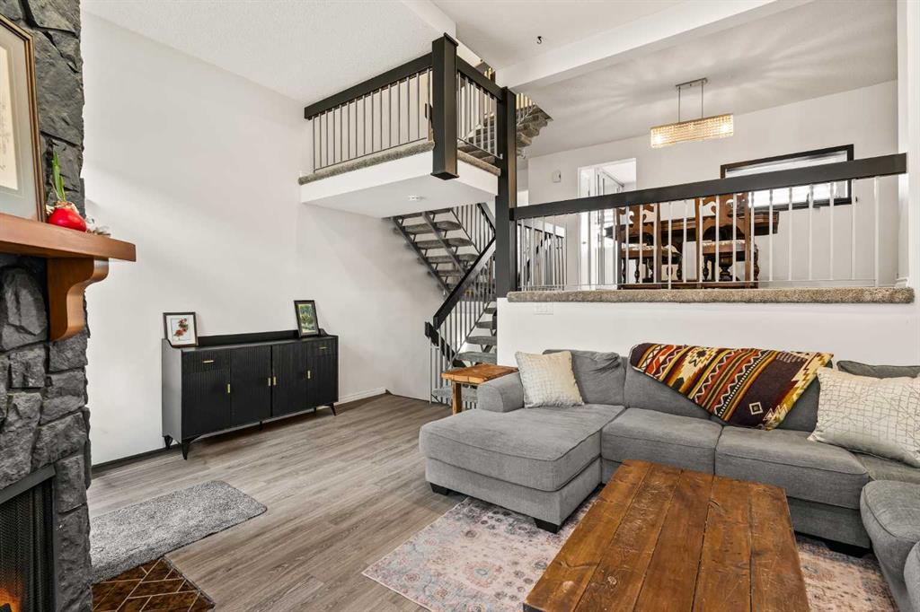 Welcome to this beautifully upgraded 4-level split nestled in the sought-after community of Braeside. Step inside and be greeted by gleaming hardwood floors and an abundance of natural light that flows throughout the home. The main level offers a formal dining room, soaring vaulted ceilings, a cozy fireplace in the living room, and a bright kitchen featuring stainless steel appliances, white cabinetry, a modern backsplash, and a charming cutout overlooking the adjacent dining space.