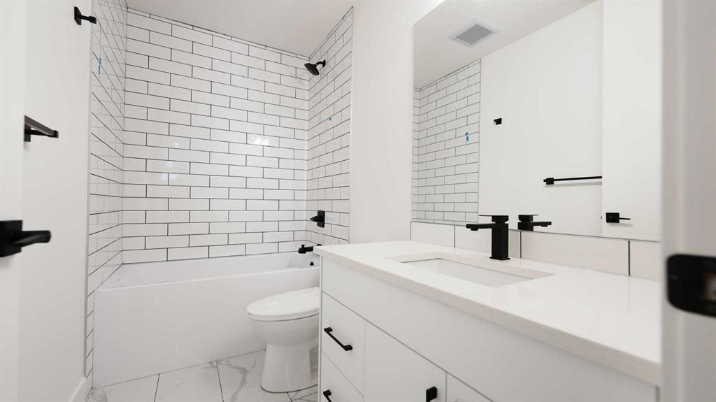 Downstairs, the fully finished basement is made for entertaining, with a large rec room perfect for movie nights, a full wet bar with a long quartz island, a third spacious bedroom, another full bathroom, and plenty of storage.