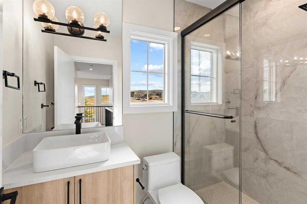 This newly built 3-bedroom, 2.5-bathroom cottage by Exquisite Homes offers over 1,400 square feet of beautifully crafted living space. On the main floor, you’ll find a bright open-concept living room with a Montigo gas fireplace, a stylish chef’s kitchen with quartz counters, high-end stainless steel appliances, a gas range, and floor-to-ceiling cabinetry. There’s also a powder room and stacked laundry for added convenience.