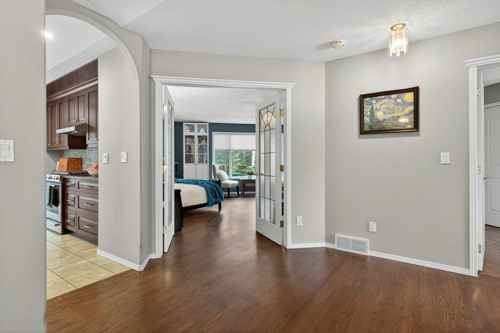 Set on 4.00 acres of mature trees in The Highlands of West Bragg Creek, this walkout bungalow offers a balance of space, functionality, and a quiet rural setting just minutes from the hamlet. With over 2,400 square feet above grade and a fully developed lower level, the home features five bedrooms and 3.1 bathrooms, with a layout that supports both day-to-day living and hosting family and guests .