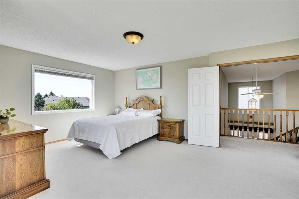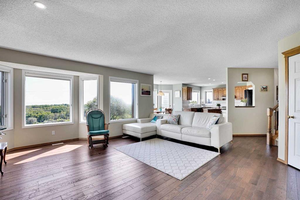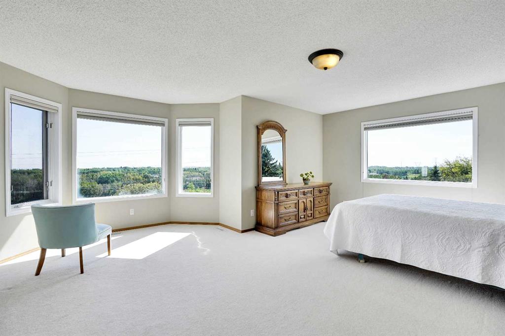 Great location acreage, close to all living facilities, Rocky ridge YMCA, COSTCO, WALMART, HOME DEPOT, PRIVATE SCHOOLS, ETC. !!!!!!!!!!!!! the elegant, comfort & tranquility of slow-paced country living, plus all community amenities & vitality of downtown Calgary – you truly can have it all in Church Ranches, an acreage community situated just 30 minutes northwest of the Calgary downtown core with lakes. This home rests on 2.13 acres of sun drenched, treed countryside, boasting stunning eastward views from both the partially covered back deck & the master bedroom. One step inside & the allure of this home swells, greeting you from the main entryway with vaulted ceilings, gleaming hardwood floors & a focal point staircase curling upwards to the 2nd floor. Towards the rear of the house, the family room, kitchen, & dining nook take full advantage of sprawling eastward facing windows. The upper floor accommodates two large bedrooms in addition to a massive master with a large 5-piece ensuite, finished with double sinks, soaker tub & separate shower. The cherry on top is a bright walkout basement with 9’ ceilings, rec room, 4th bedroom, den, full bathroom & storage.