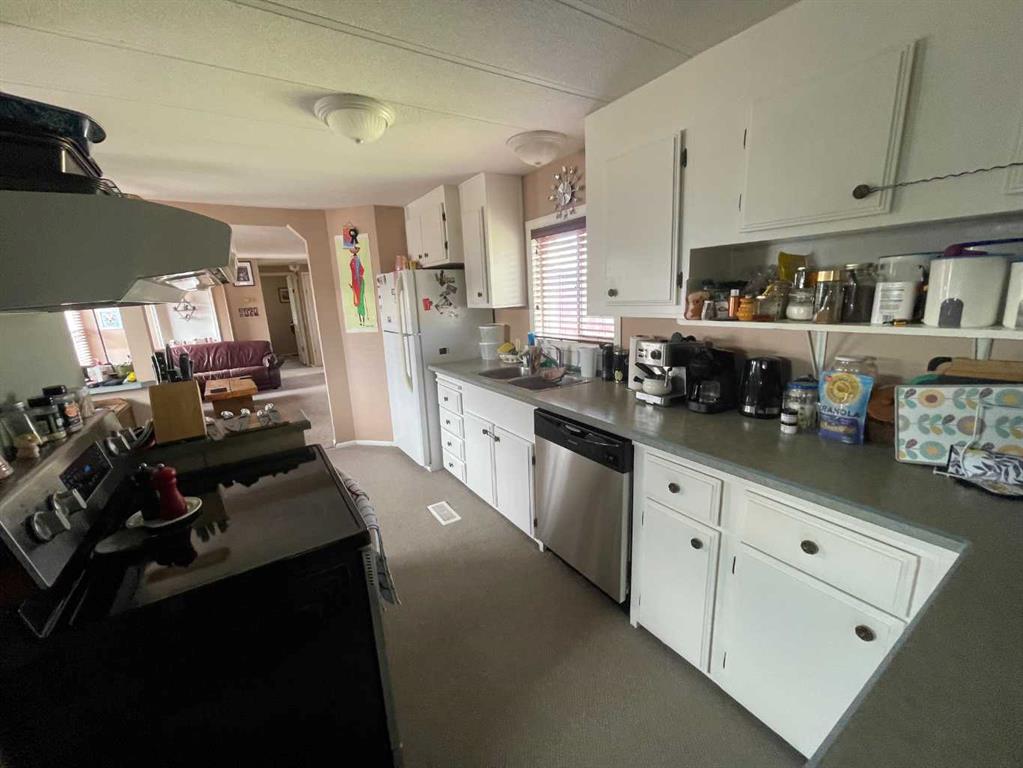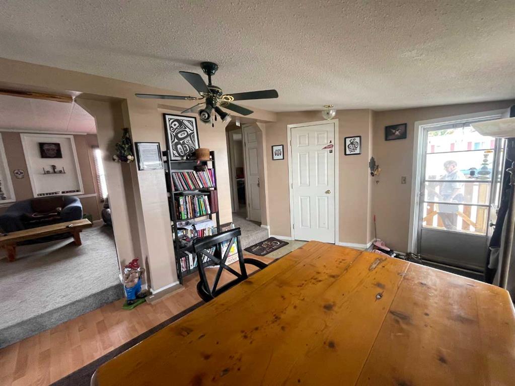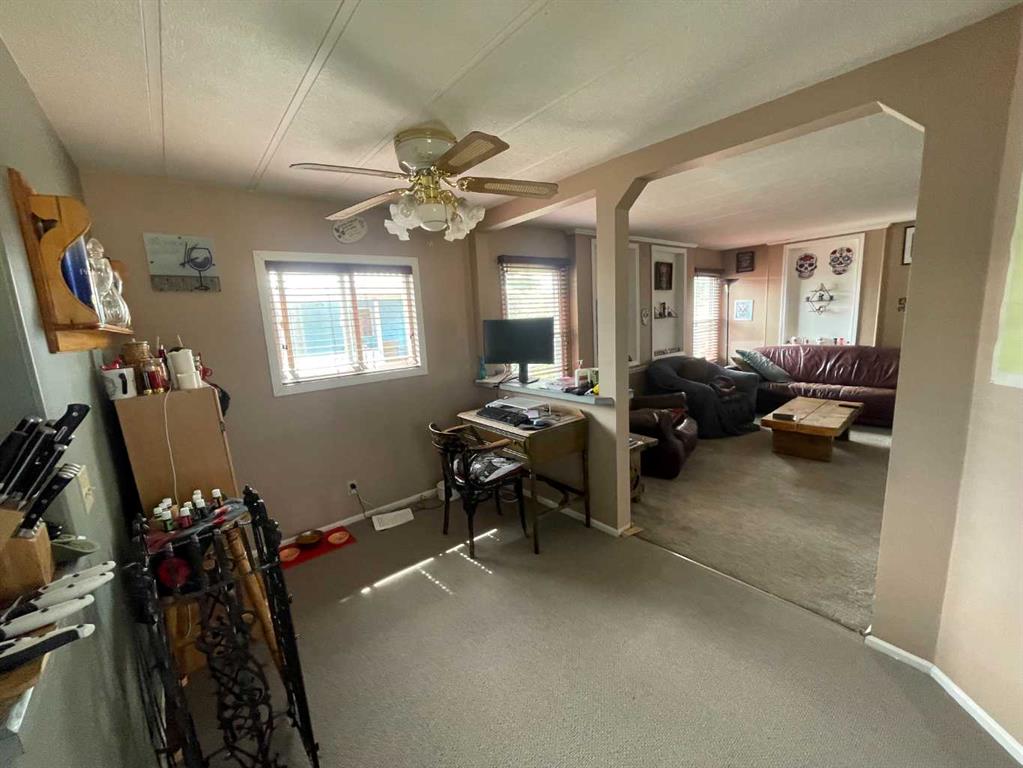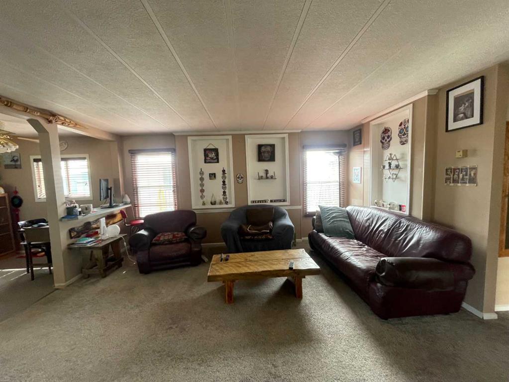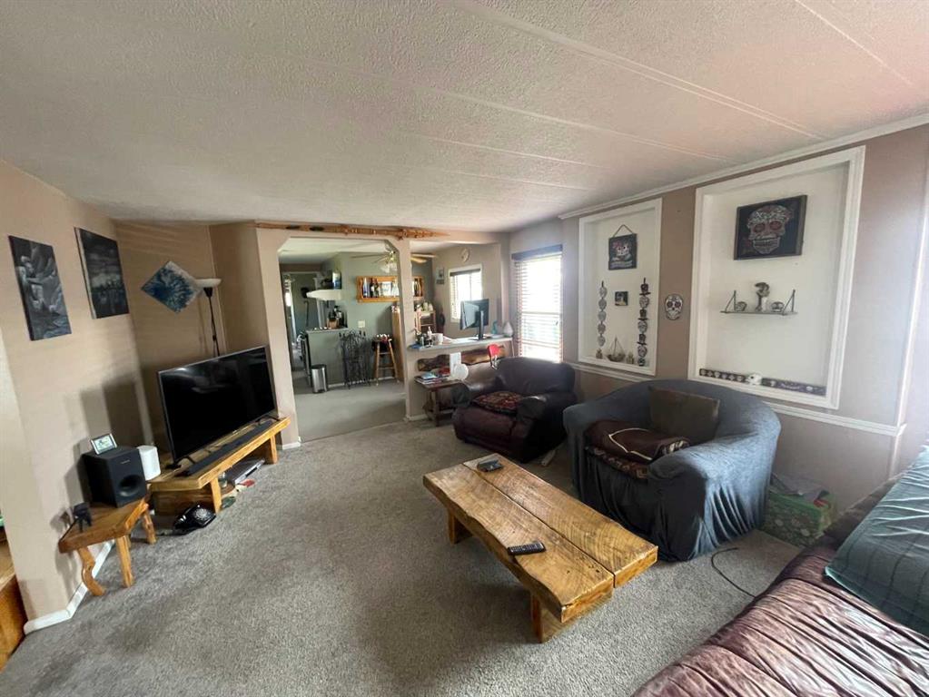 READY FOR A JUNE 1st POSSESSION! Here is a great set-up for first time buyers or downsizers out there. This mobile home on concrete pilings, with an addition, has had extensive renovations in recent years both inside and out! The front door leads into the addition which is a flex room that is currently used as a large dining room. It has a wood burning stove that helps keep the place nice and cozy in the winter. With 2 bedrooms and 2 baths this home is all set. Interior upgrades in recent years include: new hot water tank, new dishwasher, newer stove, newer faucets in kitchen and baths, newer custom blinds and various plumbing upgrades. Exterior upgrades include: concrete driveway, all new stucco exterior, some newer vinyl windows, new insulation and heat tape on main water line, and the belly bag was recently inspected and minor repairs completed. Outside you’ll enjoy the green space just over your back fence, a large storage shed with power and a wood shed. A good sized yard with firepit, a covered front patio and a carport to shelter your vehicle when that dreaded season comes upon us. Call your favourite realtor and come have a look!