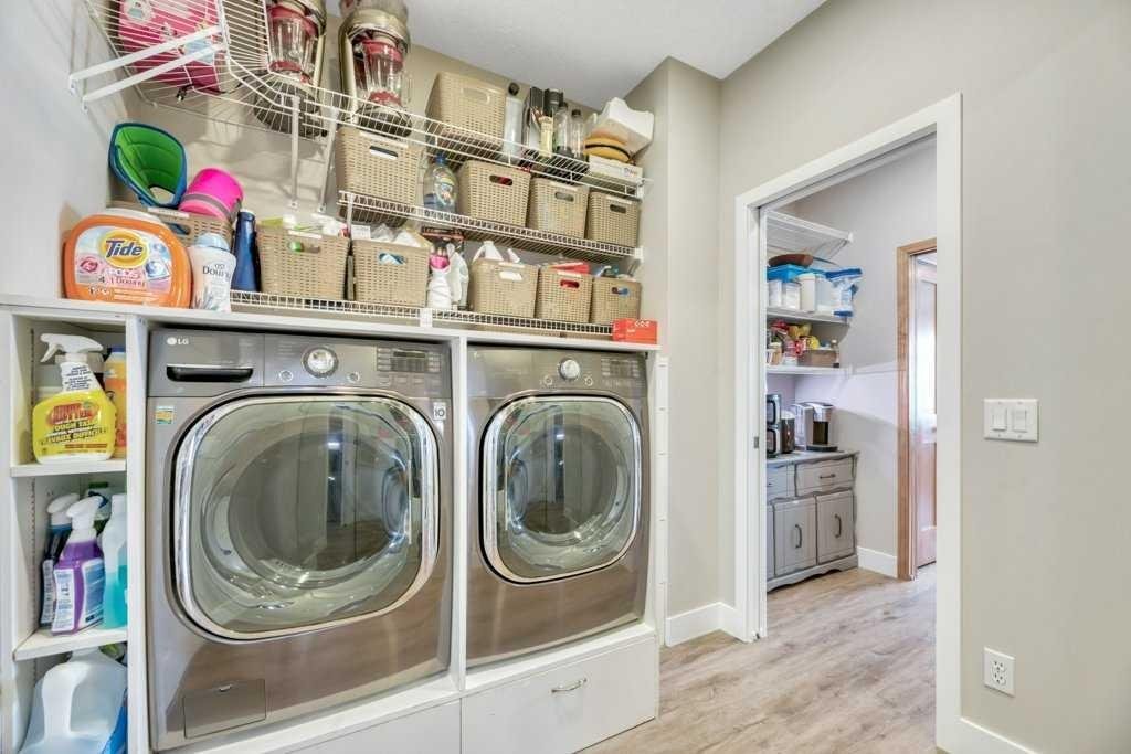 Inside, the home welcomes you with a large entrance and bright front office, ideal for working from home. The open concept main floor is designed for entertaining with a spacious living room, gas fireplace, and a stunning kitchen featuring quartz countertops, a large gathering island, gas stove, walk-through pantry, and a dining area overlooking the pool and canal.