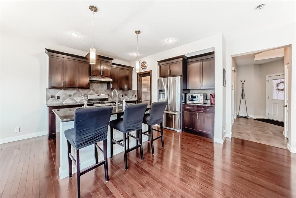Built by Calbridge Homes and set on a quiet, family-friendly street in one of Cochrane’s most loved neighbourhoods, this home offers the space, comfort, and layout that just makes sense. From the moment you walk in, it feels welcoming. The front entry is bright and open with a cathedral ceiling, and the main floor flows beautifully with 9-foot ceilings, a cozy gas fireplace, and plenty of room to gather without feeling crowded.