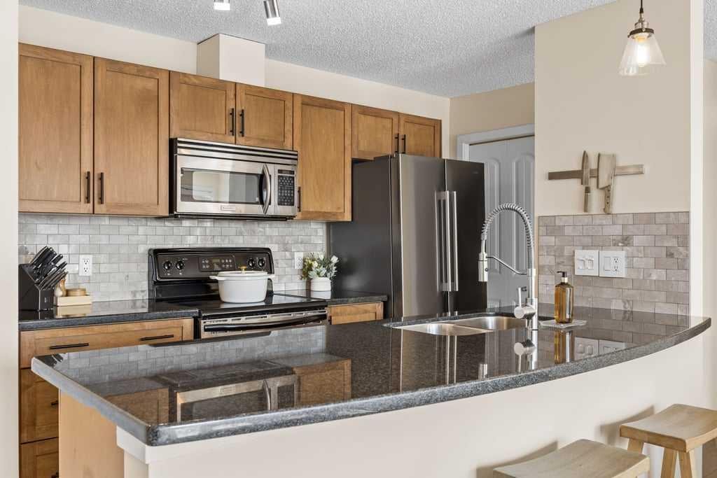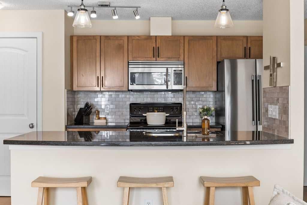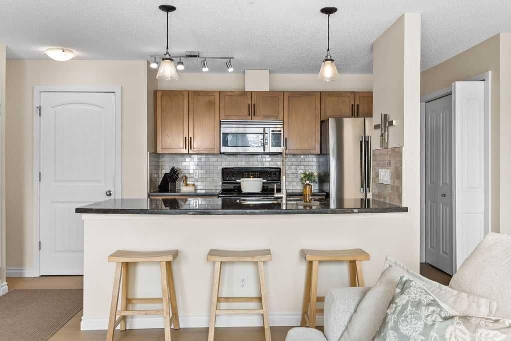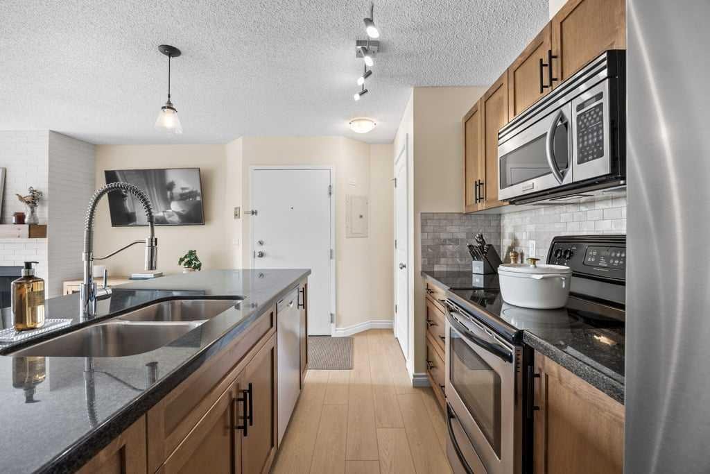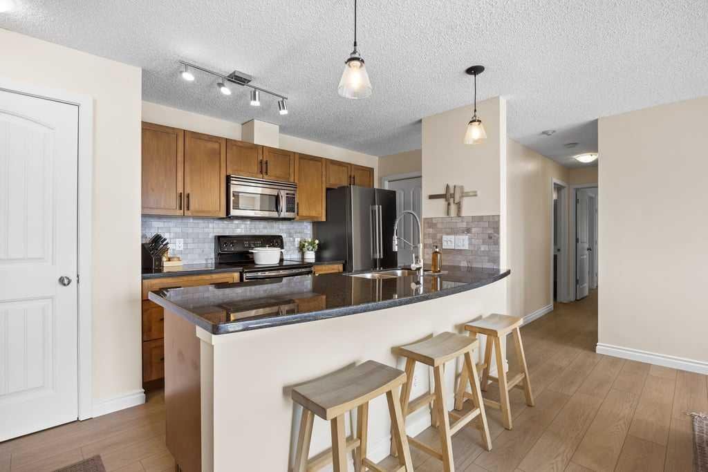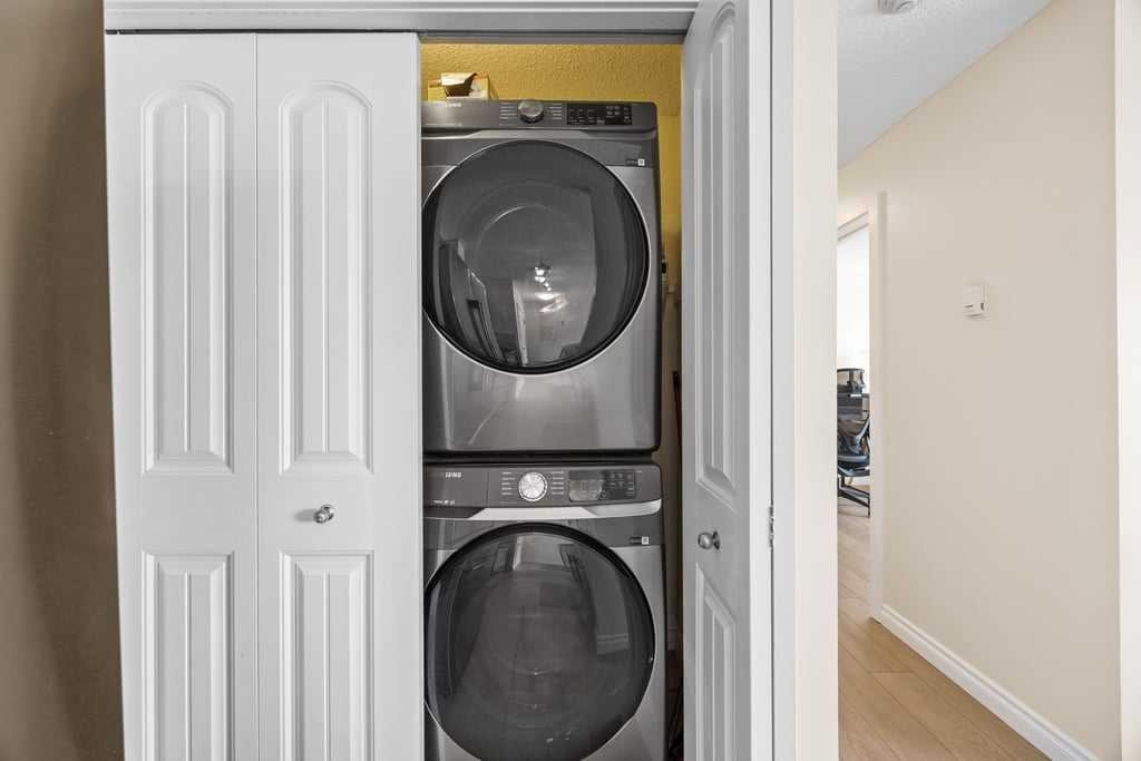 Additional features include in-suite laundry, a large private storage locker, and a reserved parking stall in the heated parkade—conveniently located on the same level as the unit for easy access.
