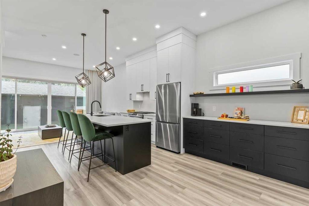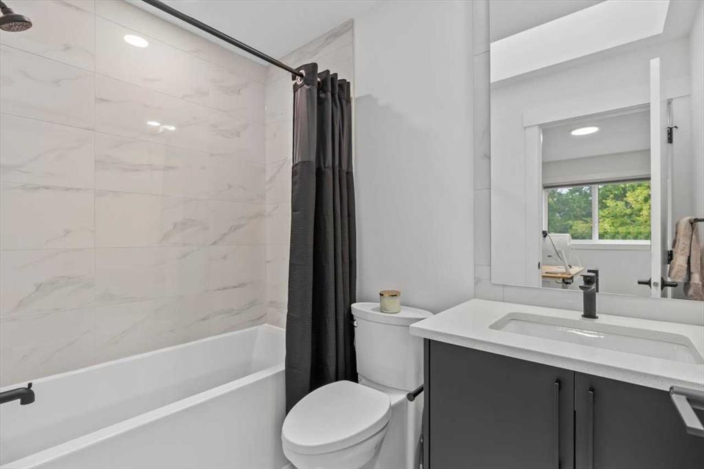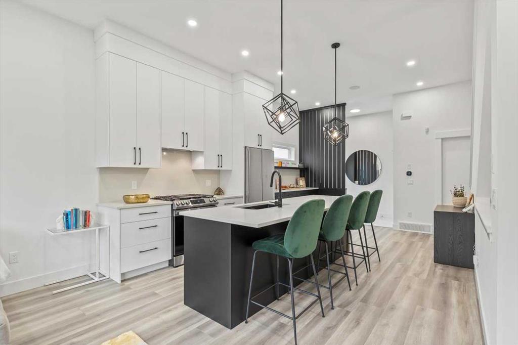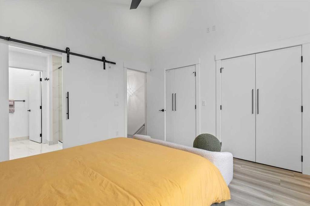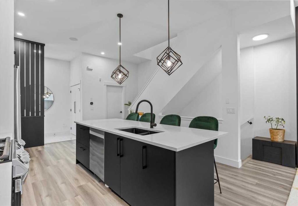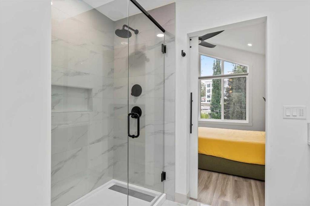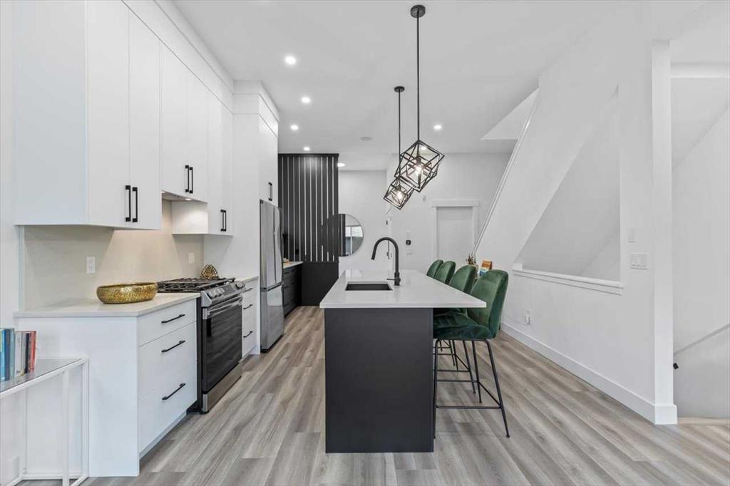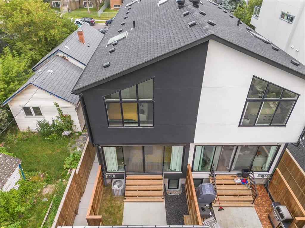 Welcome to this Immaculate and thoughtfully designed town home in the heart of Marda Loop, over 1,700 sq ft of living space, just minutes away from downtown. Features superior party wall system between units. Main floor showcases 11 ft ceiling, open concept layout, vinyl plank flooring, designer built entry unit. The living room is spacious featuring a wall unit, sleek tile, and a Bluetooth enabled electric fireplace. The kitchen is equally impressive, boasting a large island with quartz counter top, ideal for entertaining, ample soft- close cabinetry, stainless steel appliances. The large south facing sliding door brings in rays of sunshine and light through out the day, tastefully covered with Hunter Douglas honeycomb shades and floor to ceiling blackout drapes for privacy professionally installed by Normandeau, overlookimg a fenced, cozy yard leading to a single detached garage.This floor is completed by a spacious guest half bath. Upstairs, the primary bedroom is a true retreat, with vaulted ceilings, double door his and hers closets, large windows with professionally installed electric blackout honeycomb shades. The barn door leads into a spa-like en-suite with heated flooring, double sink vanity, quartz counters, skylight, oversized tiled shower and dual shower heads. The second large bedroom also has it’s own en-suite and skylight, plus manual honeycomb shades. The fully finished basement boasts a bright family/ flex room. A third spacious bedroom with a walk-in closet and a full bath. THIS HOME COMES WITH COUNTLESS UPGRADES- A/C, high efficiency furnace, humidifier, thankless hot water on demand, radon extraction sump pump, built-in speaker system, light dimmers in master bedroom, smart thermostat (ecobee), bathroom fan timers, kitchen and master bedroom lights can be manged through smartphone. This exceptional home offers the best of urban living in an ideal location. This is the one you have been waiting for. Book a showing today.