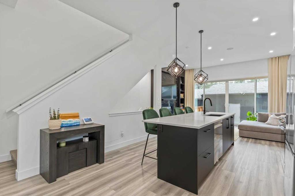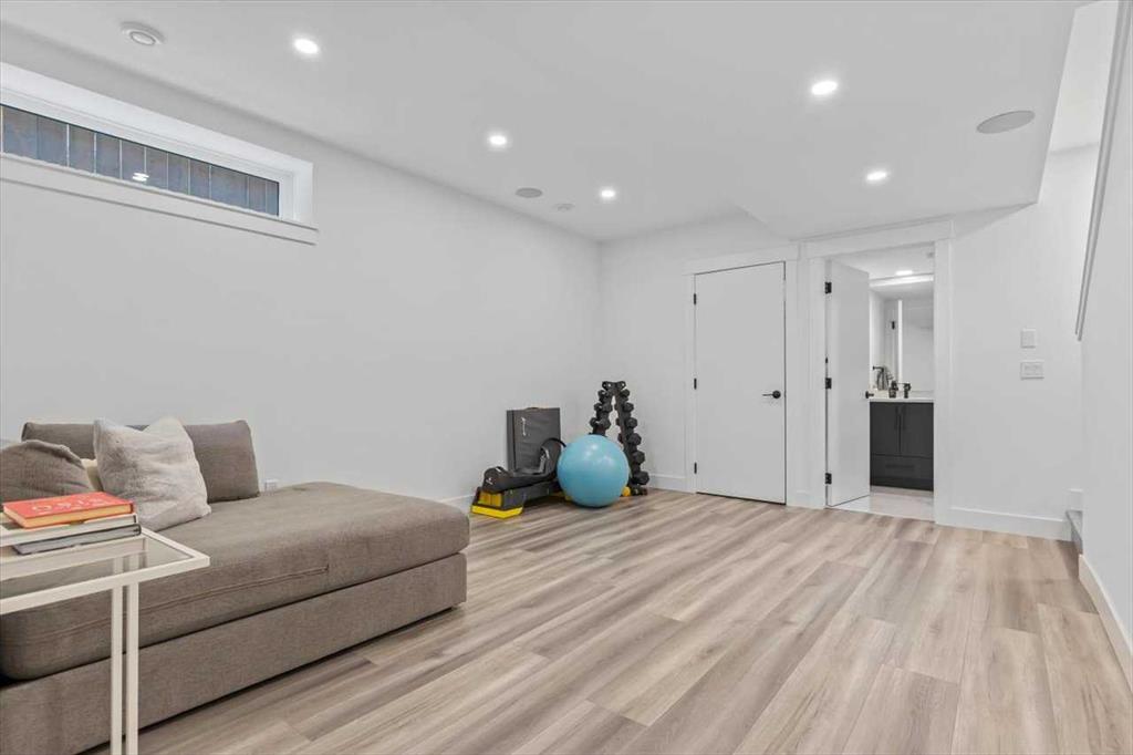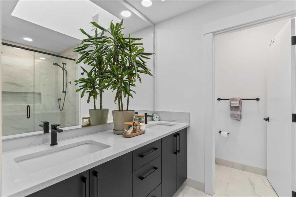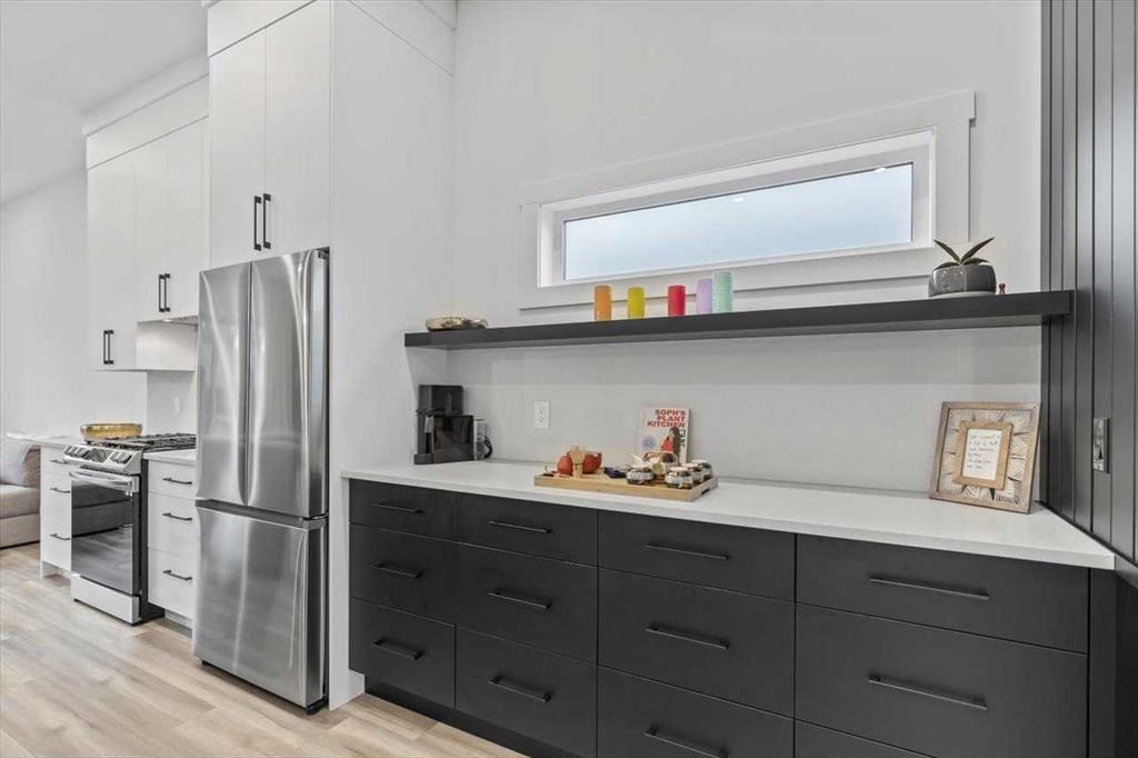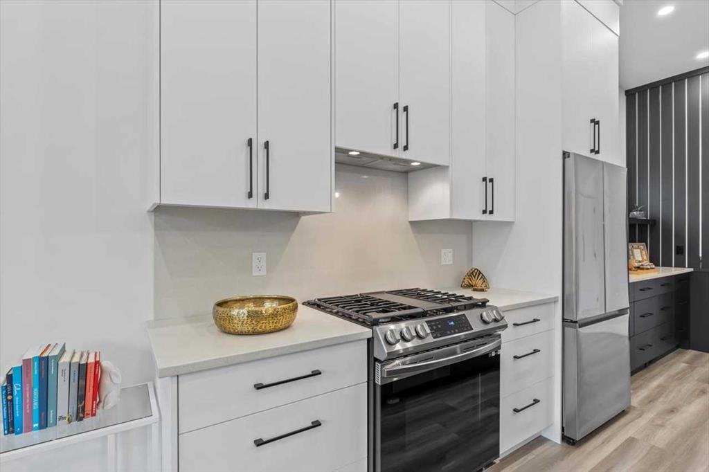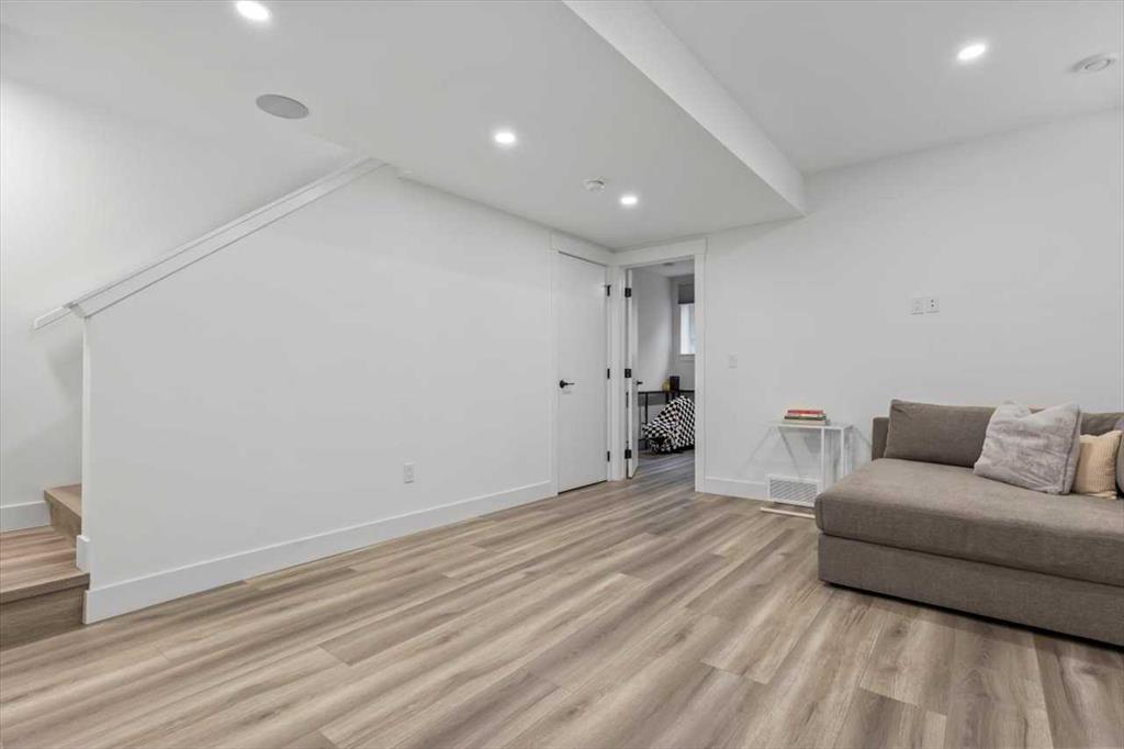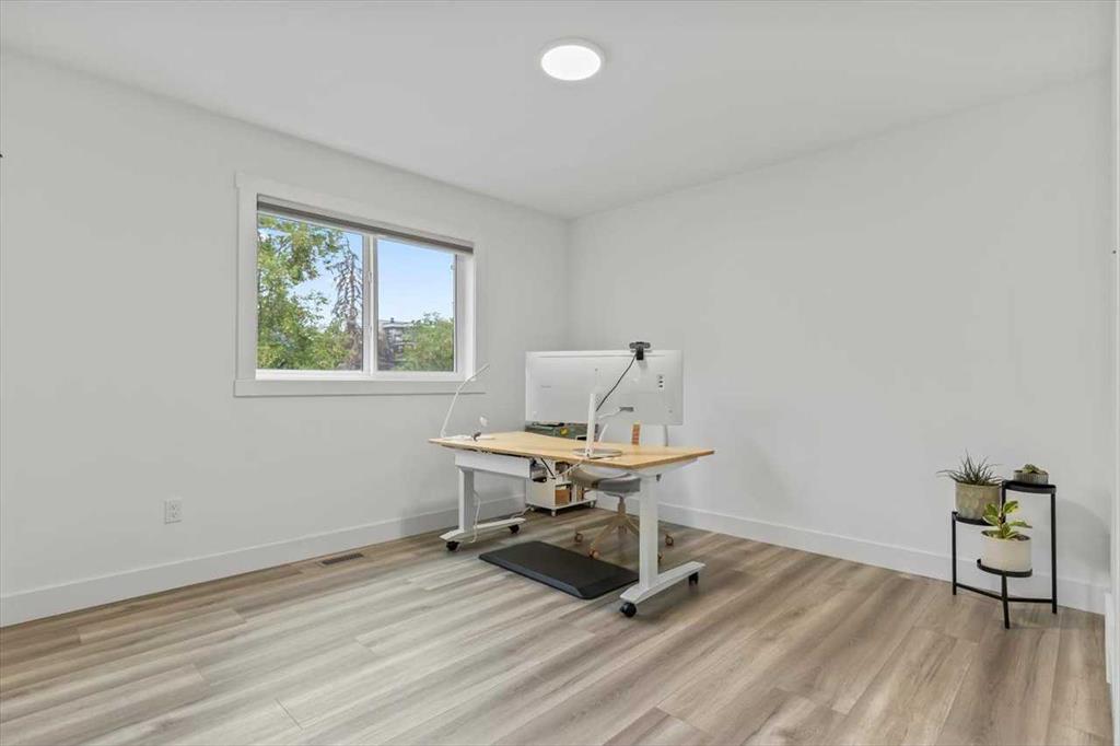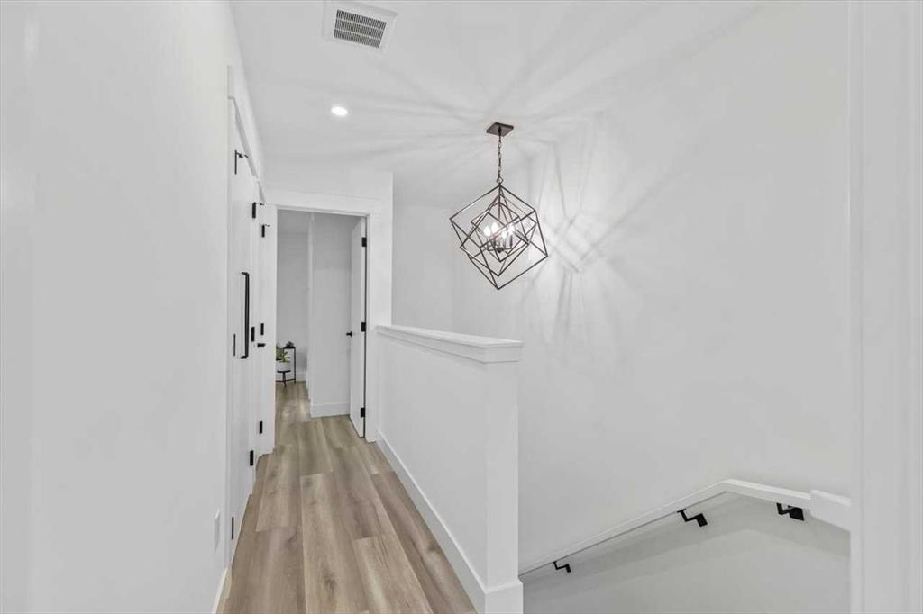 Welcome to this Immaculate and thoughtfully designed town home in the heart of Marda Loop, over 1,700 sq ft of living space, just minutes away from downtown. Features superior party wall system between units. Main floor showcases 11 ft ceiling, open concept layout, vinyl plank flooring, designer built entry unit. The living room is spacious featuring a wall unit, sleek tile, and a Bluetooth enabled electric fireplace. The kitchen is equally impressive, boasting a large island with quartz counter top, ideal for entertaining, ample soft- close cabinetry, stainless steel appliances. The large south facing sliding door brings in rays of sunshine and light through out the day, tastefully covered with Hunter Douglas honeycomb shades and floor to ceiling blackout drapes for privacy professionally installed by Normandeau, overlookimg a fenced, cozy yard leading to a single detached garage.This floor is completed by a spacious guest half bath. Upstairs, the primary bedroom is a true retreat, with vaulted ceilings, double door his and hers closets, large windows with professionally installed electric blackout honeycomb shades. The barn door leads into a spa-like en-suite with heated flooring, double sink vanity, quartz counters, skylight, oversized tiled shower and dual shower heads. The second large bedroom also has it’s own en-suite and skylight, plus manual honeycomb shades. The fully finished basement boasts a bright family/ flex room. A third spacious bedroom with a walk-in closet and a full bath. THIS HOME COMES WITH COUNTLESS UPGRADES- A/C, high efficiency furnace, humidifier, thankless hot water on demand, radon extraction sump pump, built-in speaker system, light dimmers in master bedroom, smart thermostat (ecobee), bathroom fan timers, kitchen and master bedroom lights can be manged through smartphone. This exceptional home offers the best of urban living in an ideal location. This is the one you have been waiting for. Book a showing today.